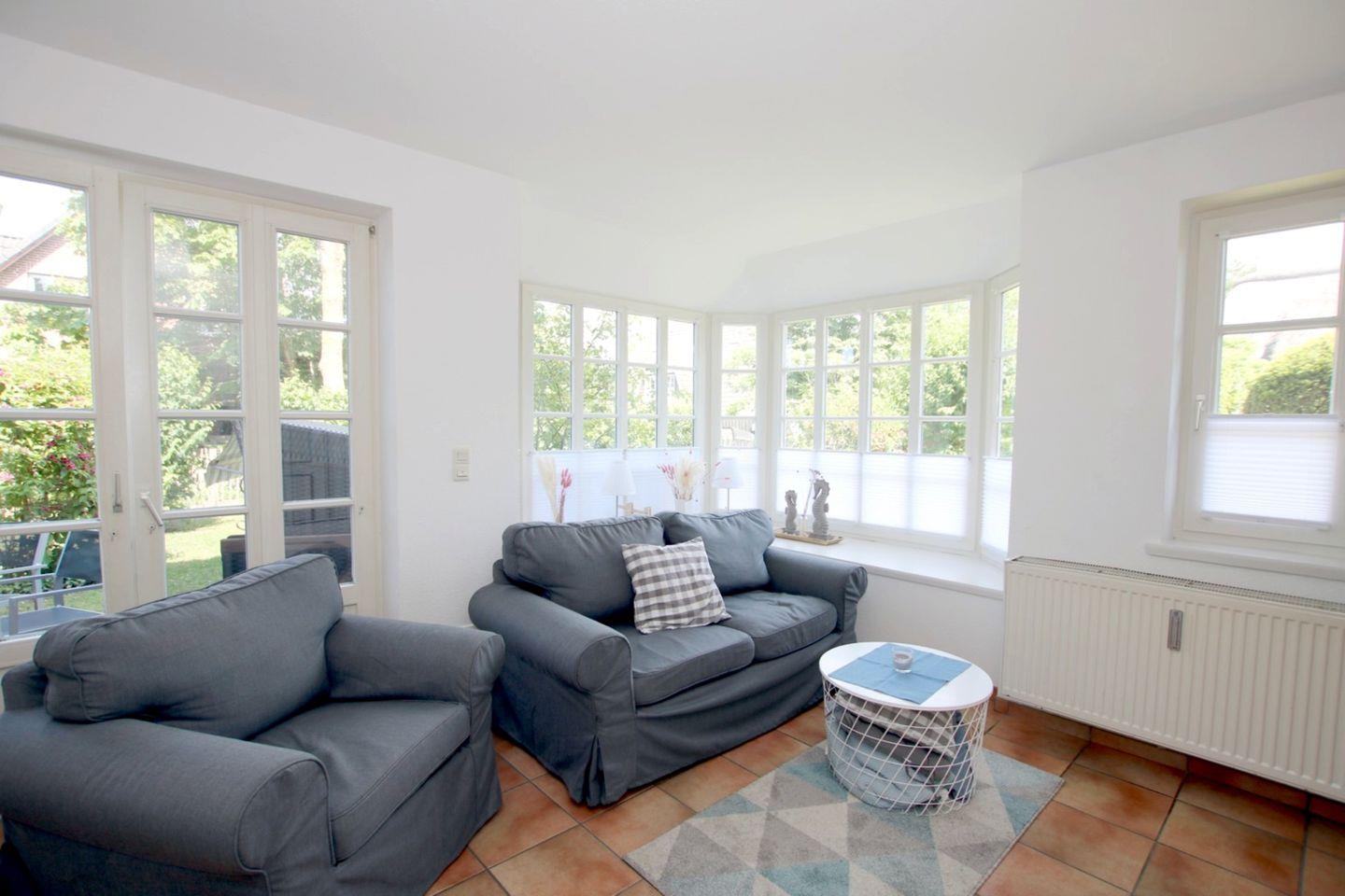 Gemütliche 3-Zimmer-Ferienwohnung in Wyk auf Föhr mit Westterrasse, Schwimmbad und Sauna im Haus.