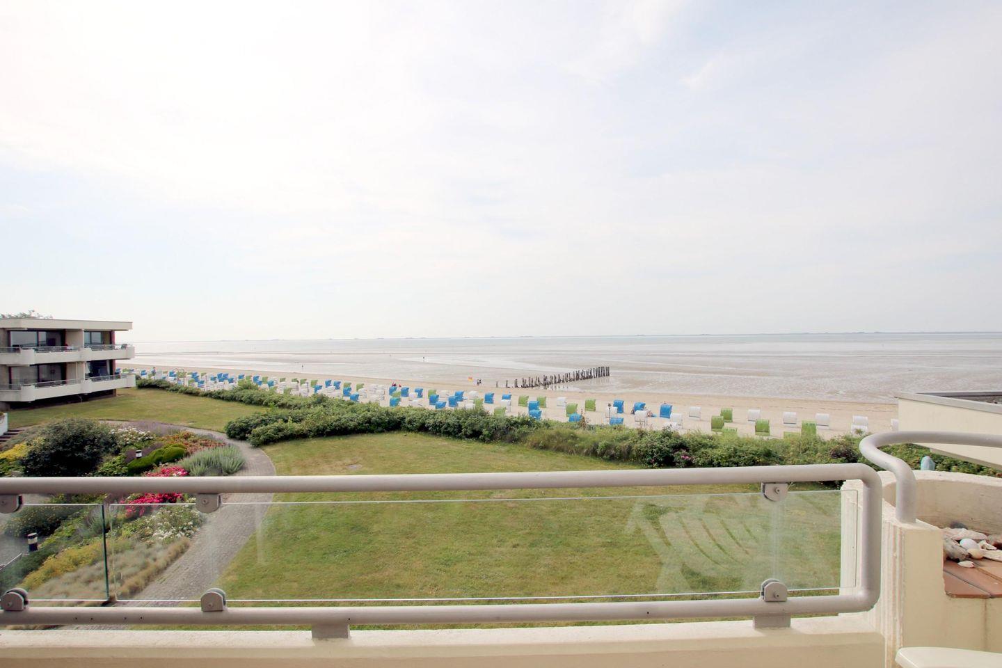 - Balkon mit fantastischem Blick auf Strand, Meer und die Halligen.