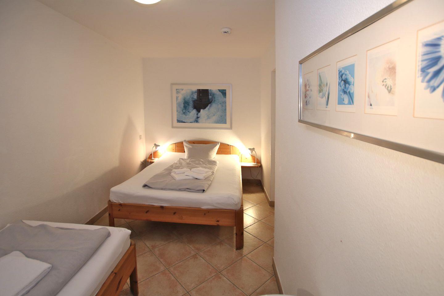 - Schlafzimmer 2 mit Doppelbett (1,40x2,00m) und Einzelbett (0,90x2,00m)