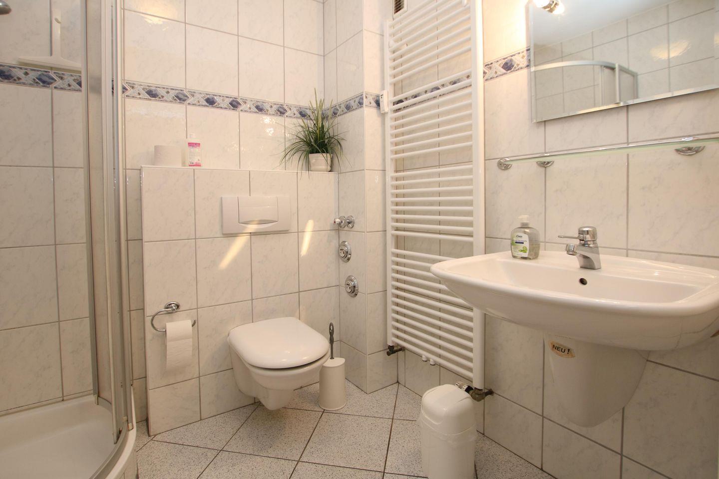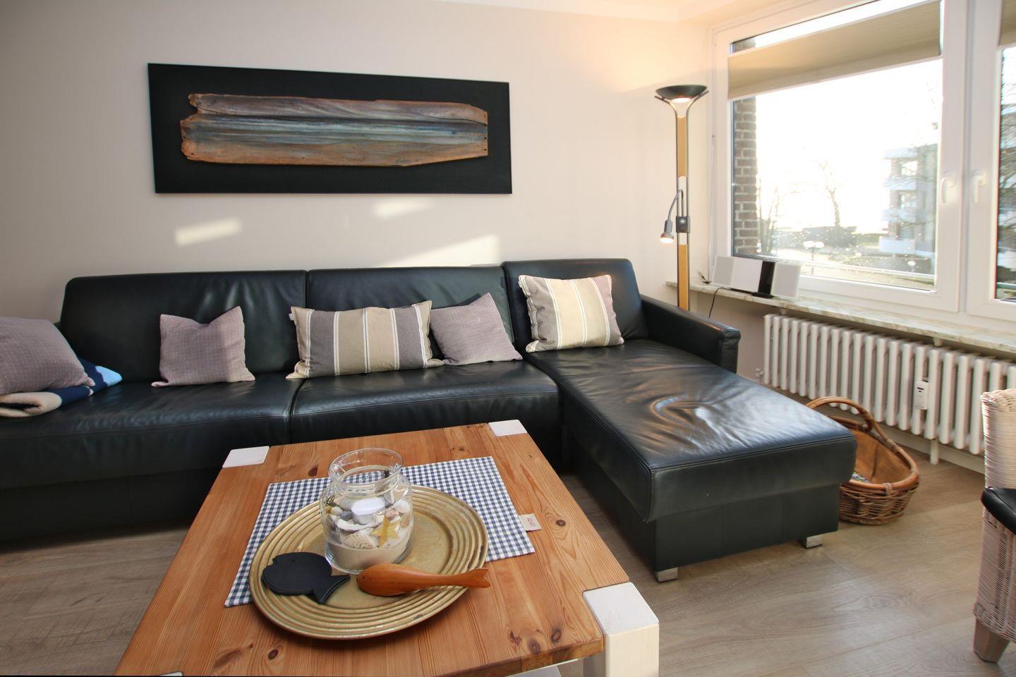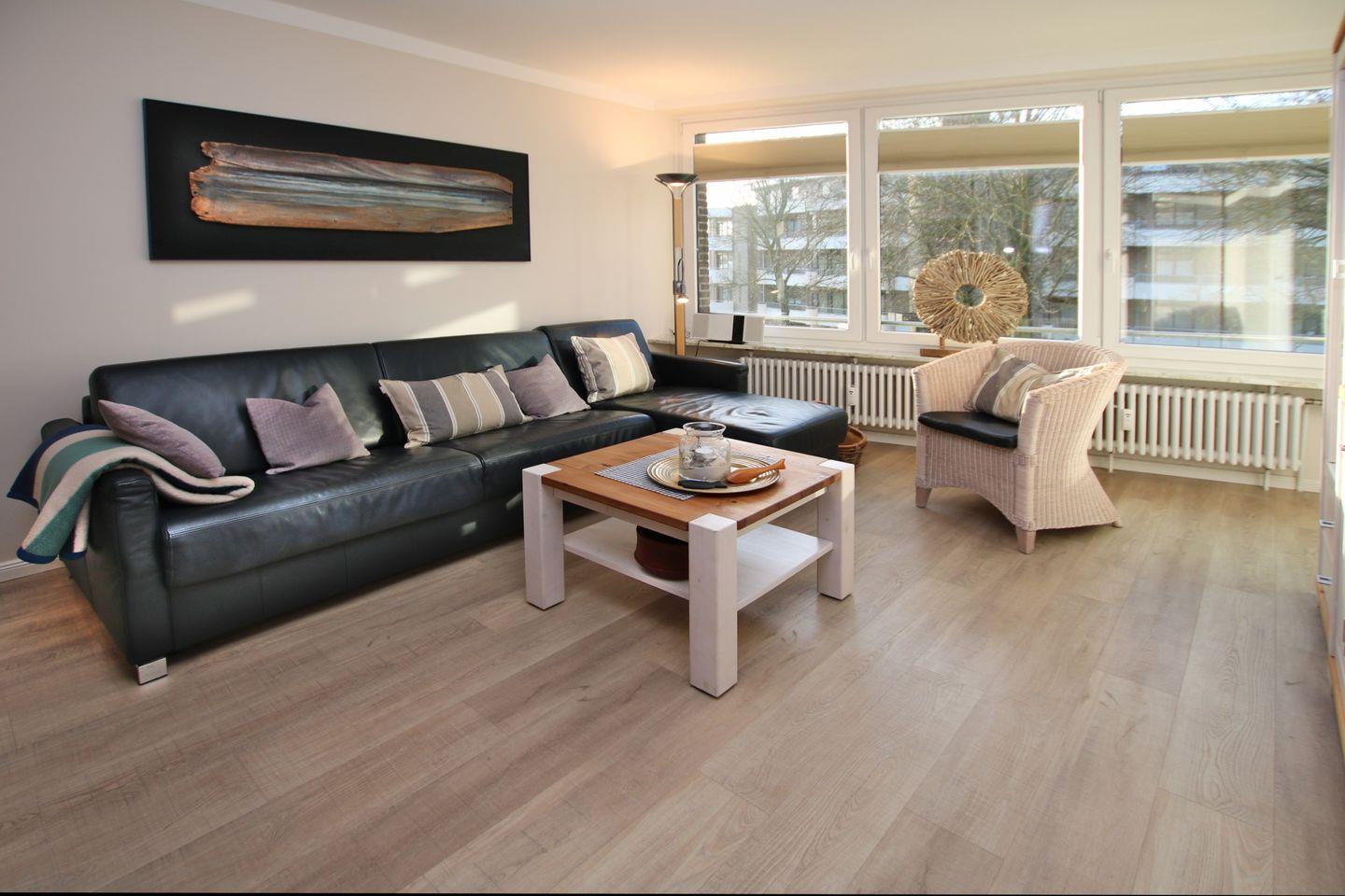 3-Zimmer-Nichtraucherwohnung im 1. OG mit großem überdachten Südbalkon. WOHNZIMMER mit Ledersitzgarnitur (Schlafcouch), Couchtisch und Esstisch mit 4 Stühlen. Separate KÜCHE mit allem Komfort. FLUR mit Garderobe. SCHLAFZIMMER mit Doppelbett und Kleiderschrank. Kl. KINDERZIMMER mit Etagenbett und Kleiderschrank und TV. BAD: Dusche, WC und Waschbecken. Kleiner Abstellraum. Im KELLER stehen Ihnen Münzwaschmaschine, -Trockner und Fahrradabstellraum zur Verfügung. Zum Strand sind es nur wenige Schritte. Einkaufsmöglichkeiten haben Sie in unmittelbarer Nähe. Zum Zentrum, Wellenbad und Kurmittelhaus sind es ca. 15 - 20 Gehminuten. Kaufmann, Bäcker und Fleischer i.d.Straße. Die Wohnung ist modern, hell und freundlich eingerichtet und 2015 renoviert. Alle Räume (außer das Bad) sind mit Design Acryl ausgelegt.