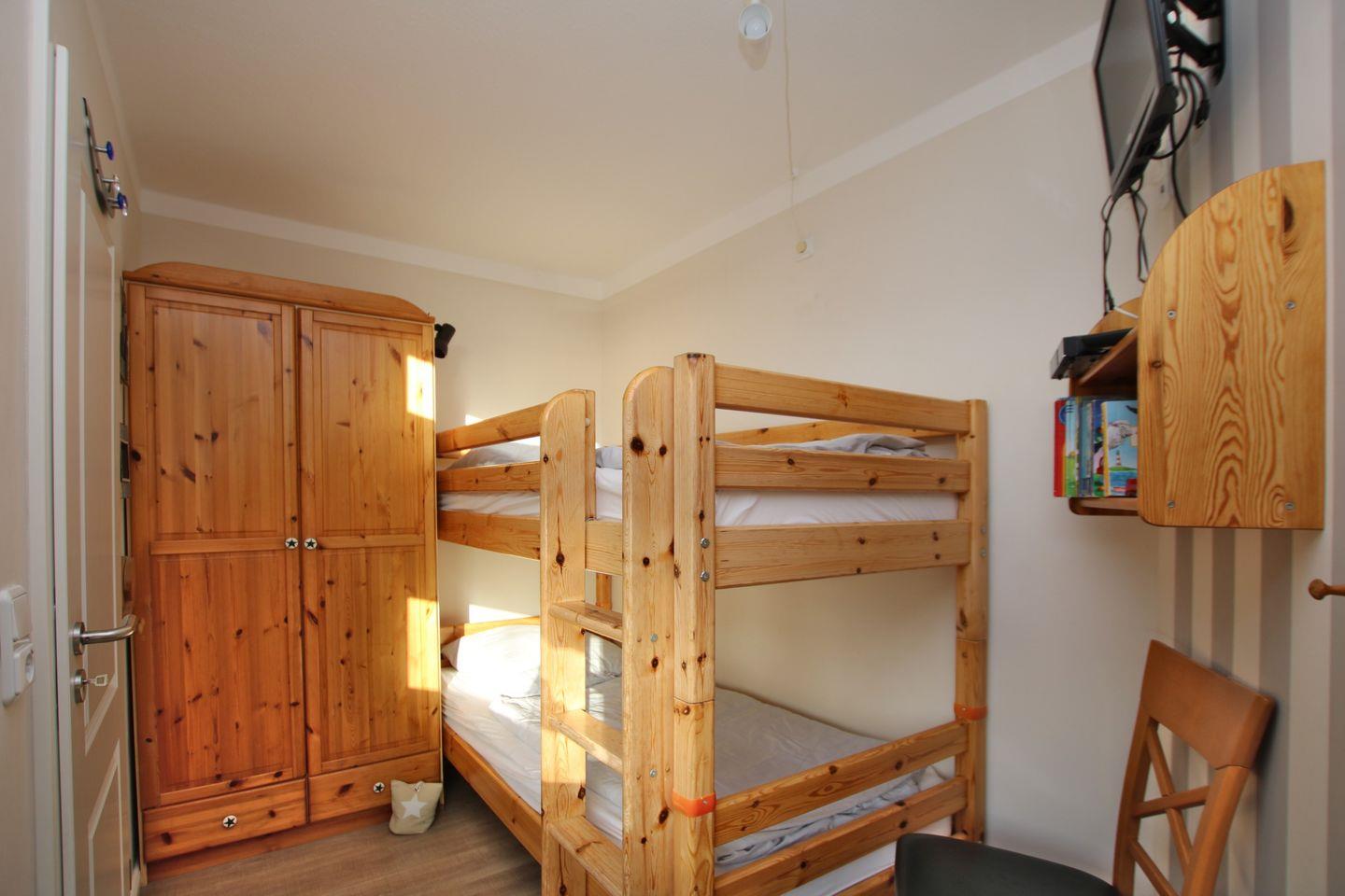 - kleines Kinderzimmer mit Etagenbett und Kleiderschrank und TV- Gerät