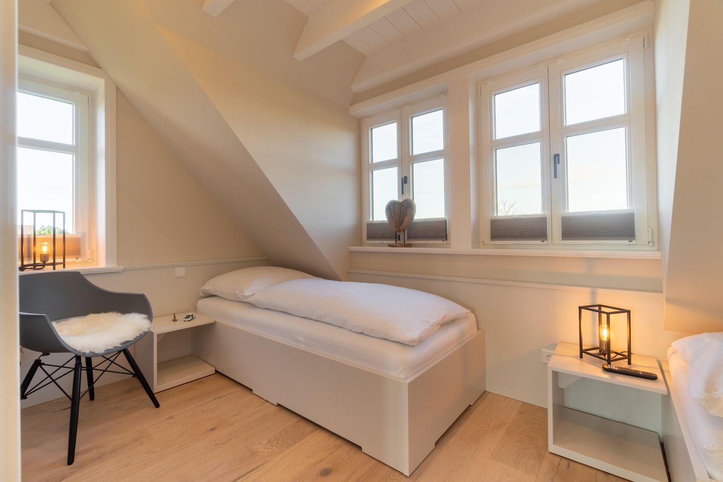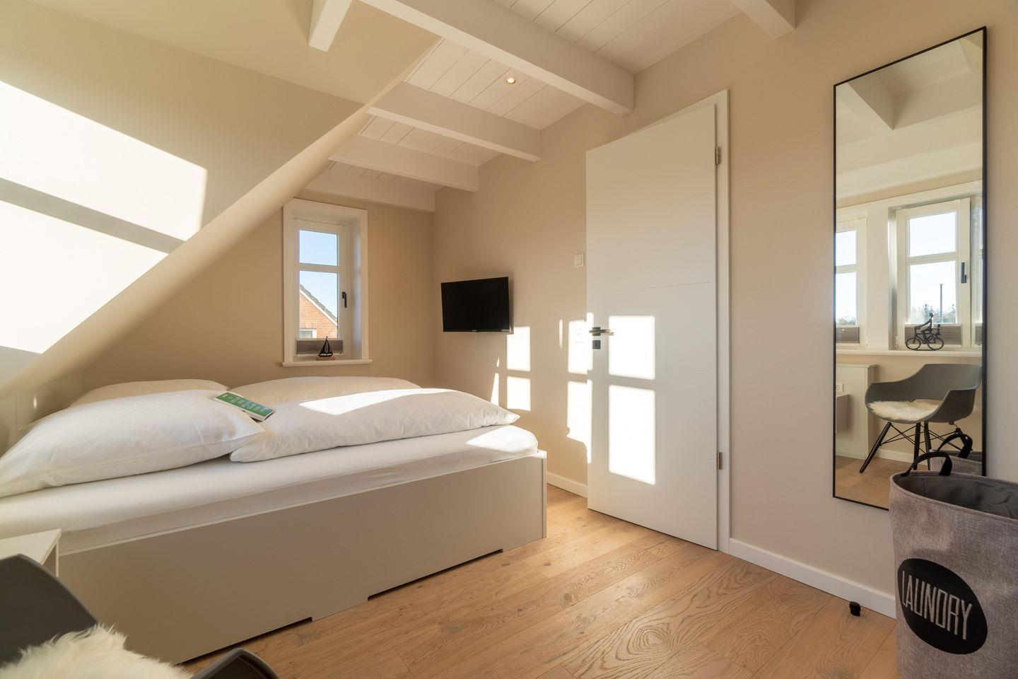 Der exklusive Hausteil Hus Sünneck verfügt über 2 Schlafzimmer und 2 Bäder und bietet somit komfortabel Platz für bis zu 4 Personen zuzüglich einer Kleinkinderaufbettung.