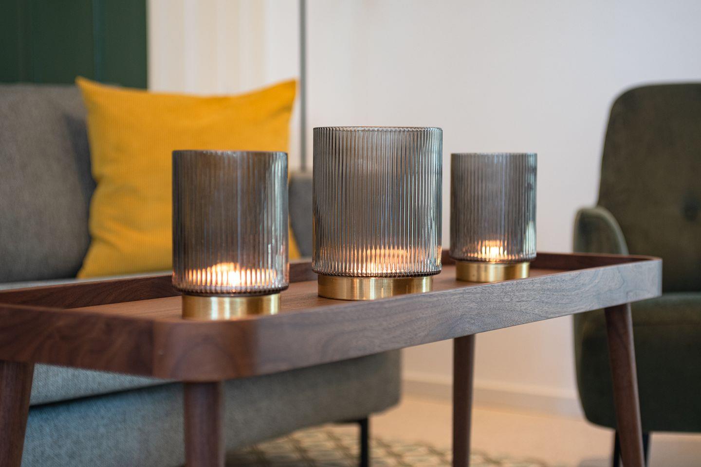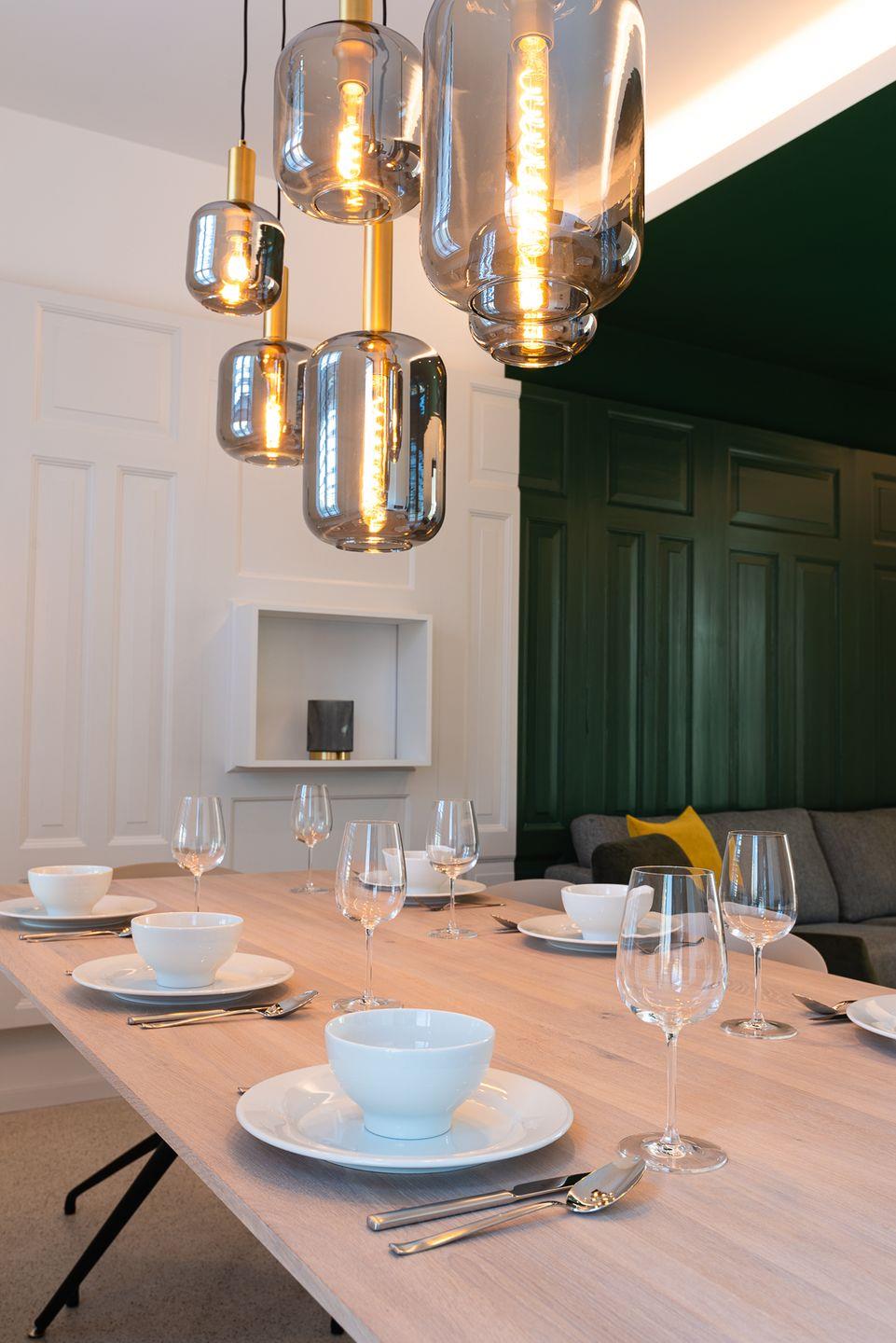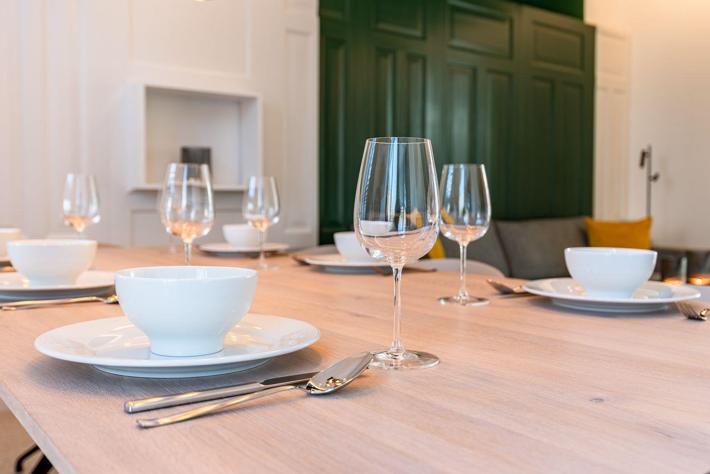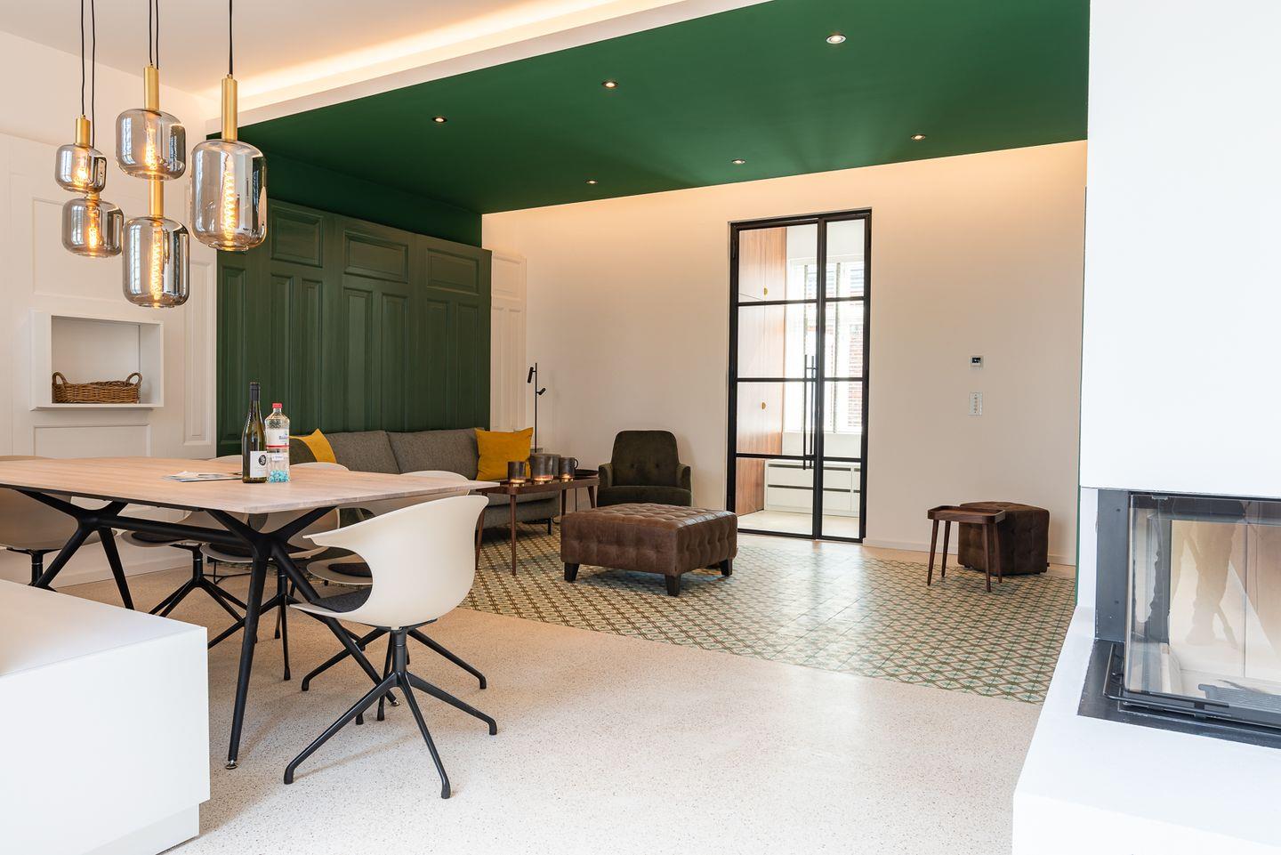 Zu den Highlights der Ferienunterkunft zählen wir u. a. die gemeinschaftliche Sauna und den Kaminofen sowie die eigene Terrasse, welche sich über eine vollständig öffnende Glasfassade mit der Küche verbinden lässt. Das einzigartige Raumkonzept zur Sanierung des Alten Notariats wurde von einer Innenarchitektin entwickelt.