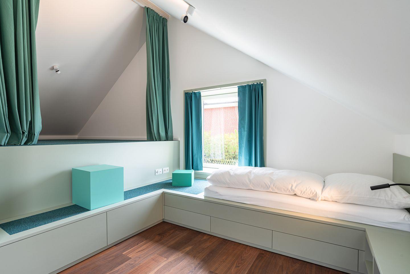 Im Obergeschoss ist das dritte Schlafzimmer mit angrenzendem Spielbereich gelegen. Das Schlafzimmer verfügt über zwei Einzelbetten.