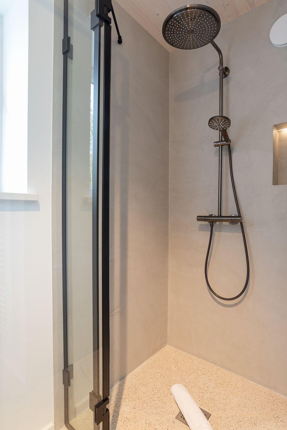 Im Erdgeschoss befinden sich der großzügige Wohn- und Essbereich mit offener Küche, zwei Schlafzimmer mit je einem Doppelbett, die beiden Duschbäder sowie ein Gäste-WC. Über den Essbereich gelangen Sie auf die eigene Terrasse und in den Garten. Ein Highlight der Ferienunterkunft stellt sicherlich die Küche dar, die Ihnen zusätzlich zu der hochwertigen Ausstattung auch die einzigartige Möglichkeit bietet, die gesamte Glasfassade zur Terrasse zu öffnen und somit Küche und Terrasse zu einem Raum verschmelzen zu lassen. Der Kaminofen im Wohnbereich sorgt auch an kühleren Tagen für eine angenehme Atmosphäre. Eines der Schlafzimmer verfügt über eine eigene Ankleide und ein Duschbad en Suite. Es liegt im Tiefparterre und ist über sieben Stufen zu erreichen. Im Tiefparterre befinden sich zudem Waschmaschine und Trockner, die Ihnen kostenlos zur Verfügung stehen.