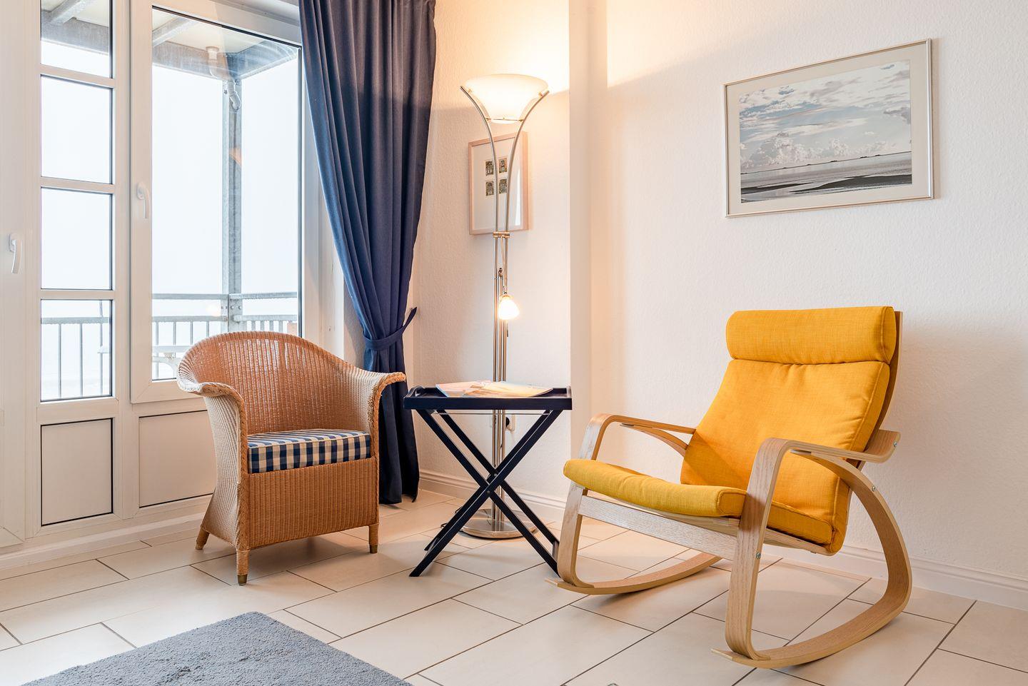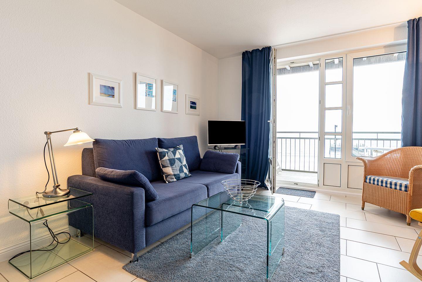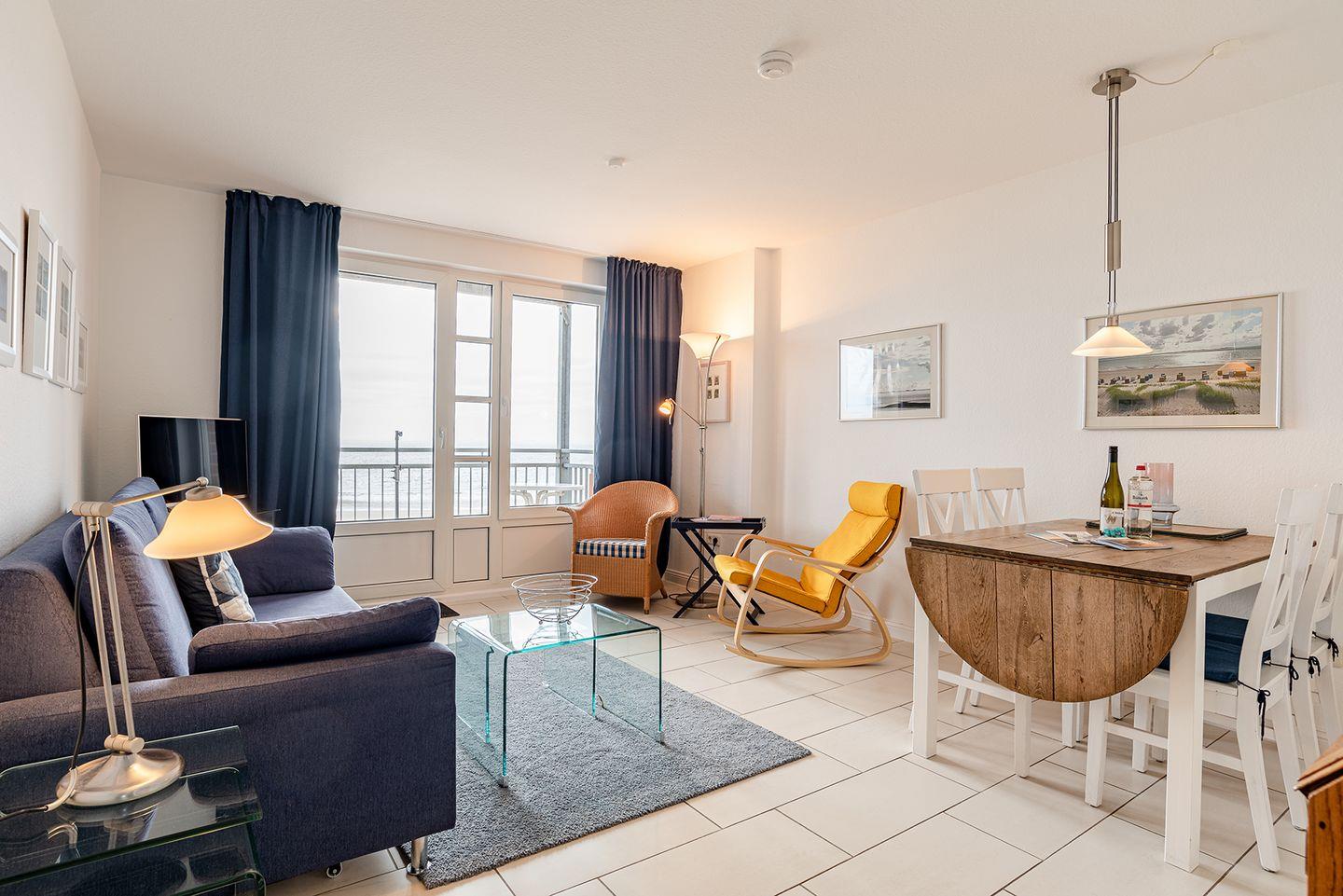 Die 2-Zimmer-Wohnung Falster befindet sich im ersten Obergeschoss mit einer besonders guten Aussicht auf den Strand und das Meer. Einmalig ist der weite Blick aus dem südöstlich zum Meer ausgerichteten, bodentiefen Fenstern im Wohnzimmer. Genießen Sie schöne Stunden auch auf dem Balkon vor dem Wohnzimmer unmittelbar an der Strandpromenade oder das rauschende Meer bei offenen Fenstern. Die Ferienwohnung Falster verfügt zudem über eine separate Küche, ein Schlafzimmer mit Doppelbett und ein Duschbad. Im Wohnbereich befindet sich eine Schlafcouch für 2 Personen.