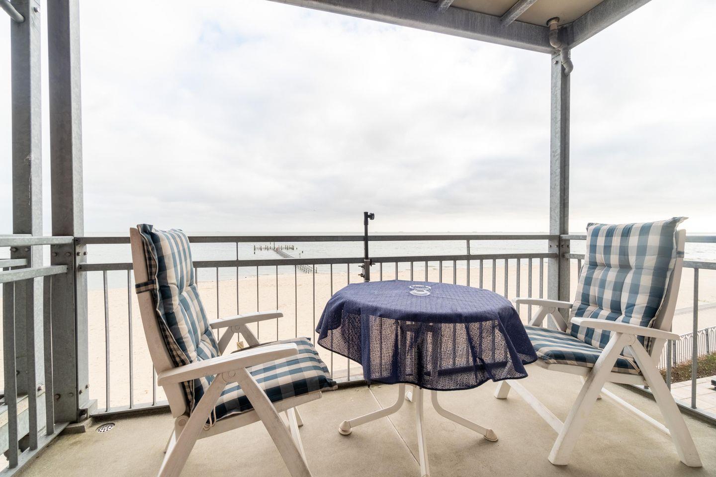 Moderne Ferienwohnung mit Balkon, Sauna, Schwimmbad und direktem Strandblick in Wyk auf Föhr.