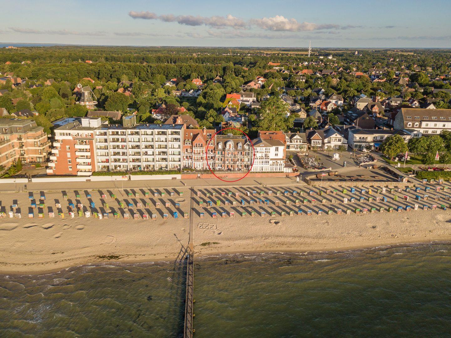 Das Highlight dieser Ferienwohnung bildet sicherlich der Balkon mit unvergleichlichem Strand- und Meerblick. Zudem befinden sich eine Sauna und ein Schwimmbad im Haus, die gemeinschaftlich genutzt werden können.