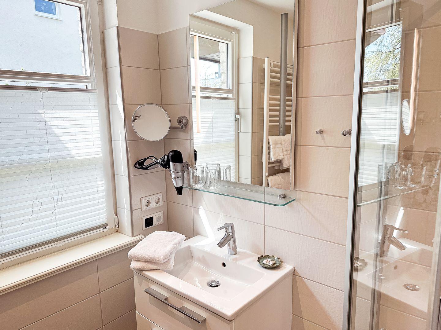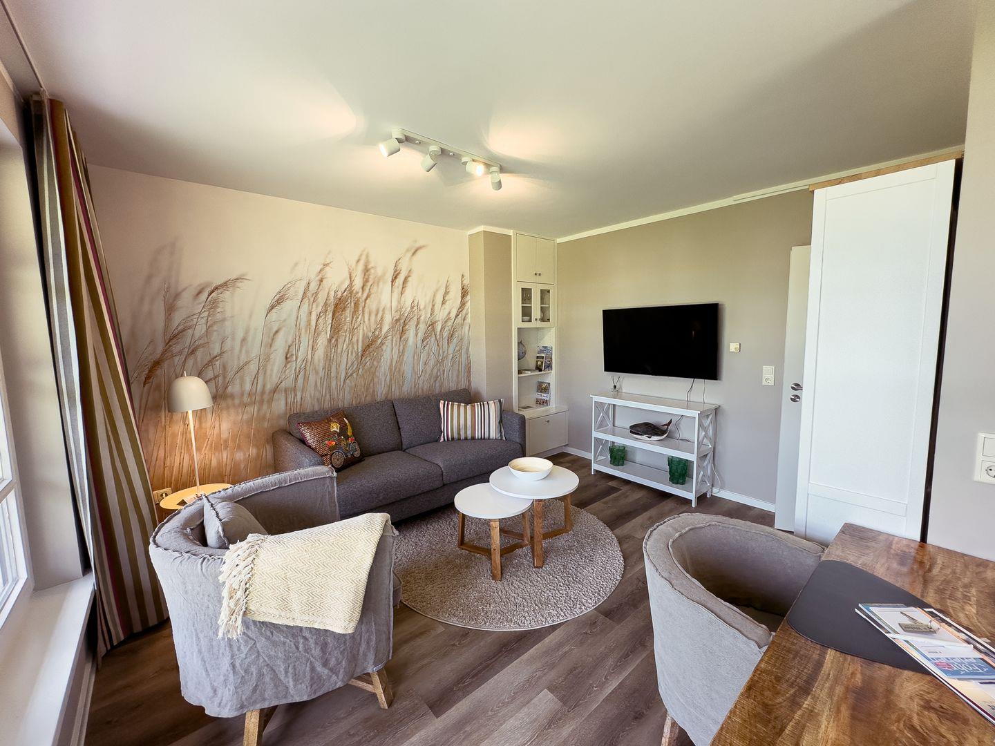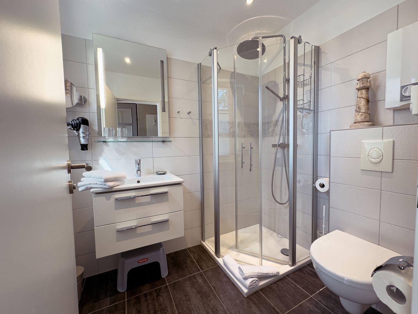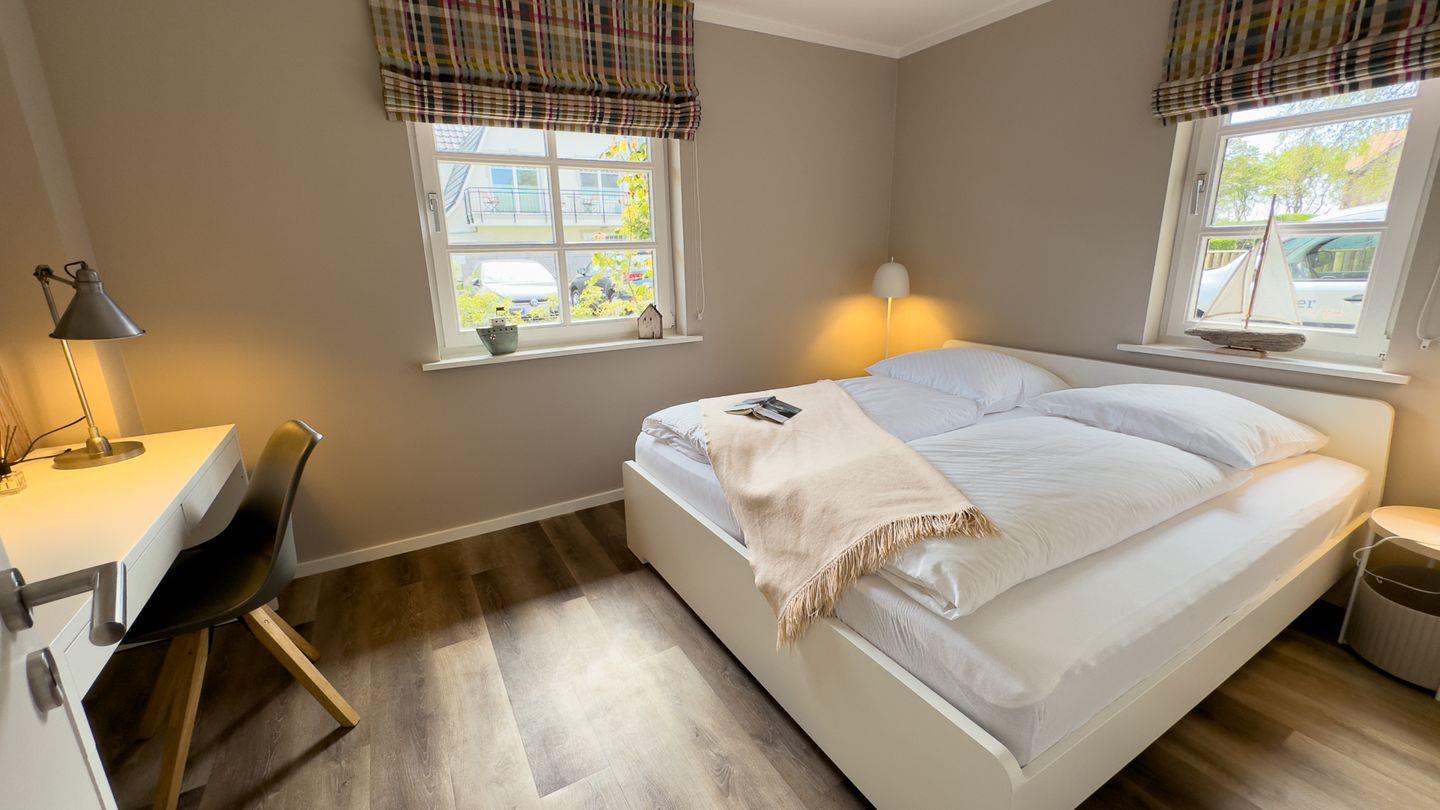 Die zur Meerseite gelegene Ferienwohnung 1 im Haus Fünen am Südstrand verfügt über 1 Schlafzimmer und 1 Duschbad und bietet somit komfortabel Platz für bis zu 4 Personen zuzüglich einer Kleinkinderaufbettung.