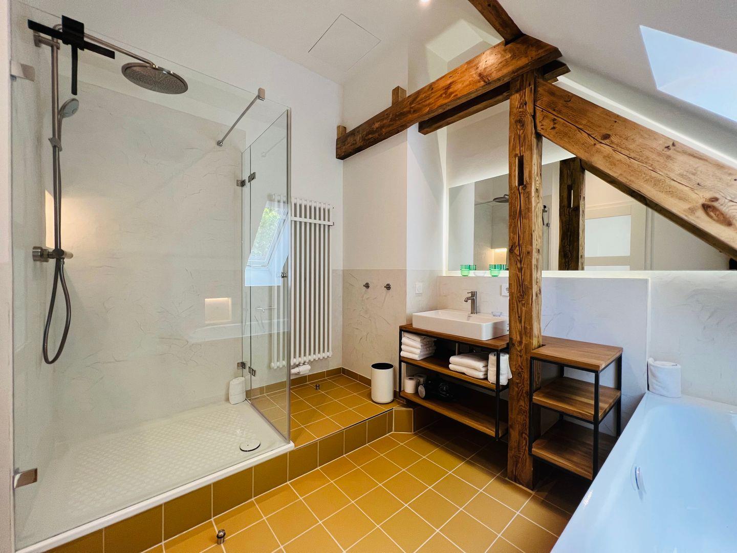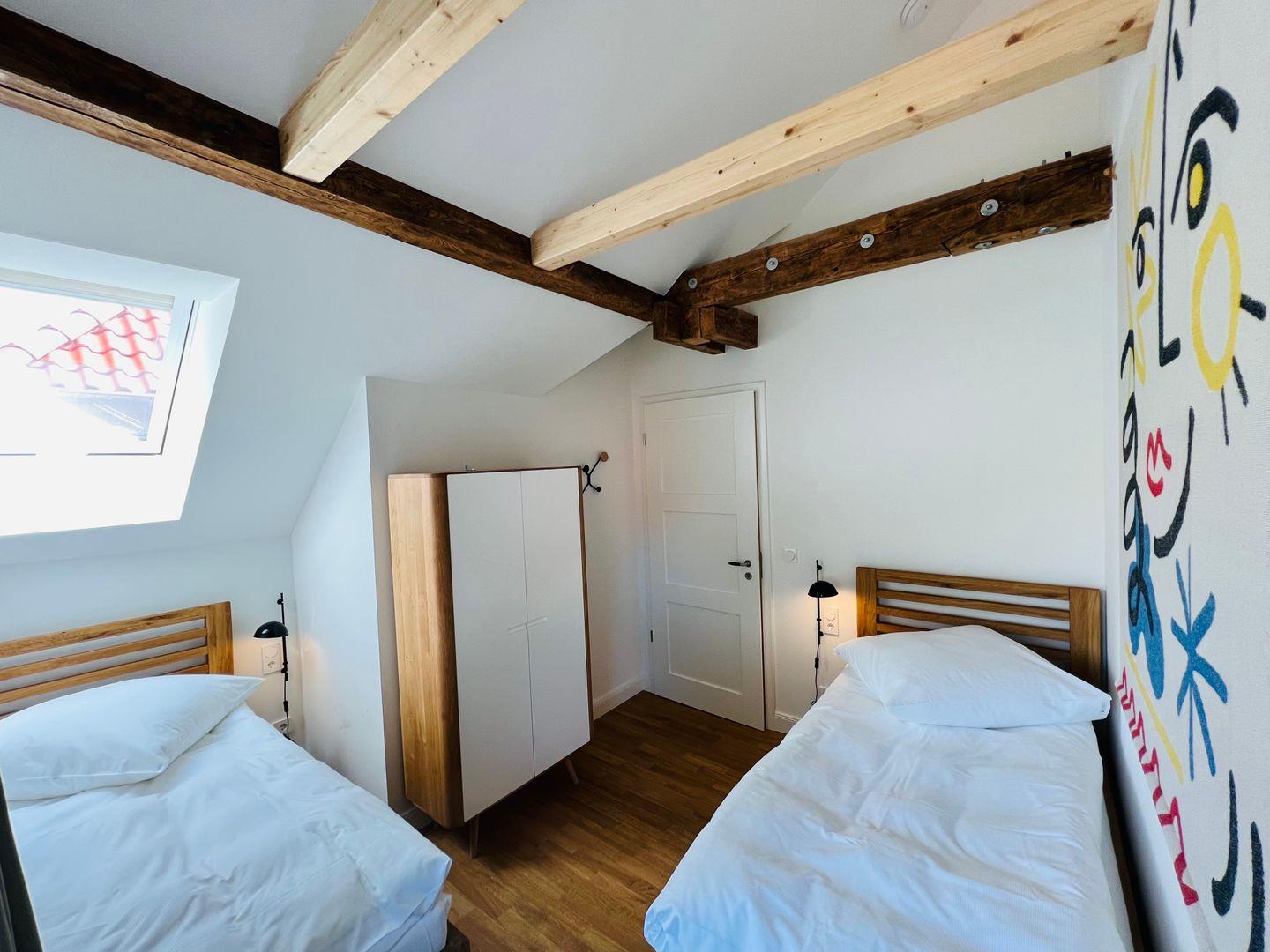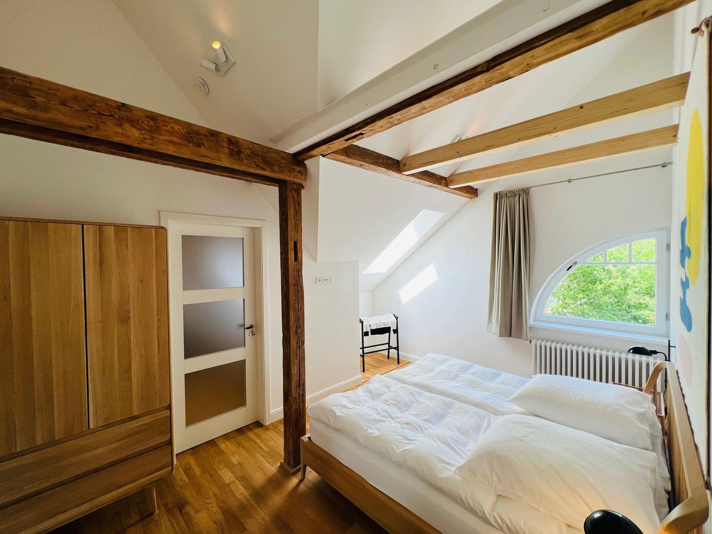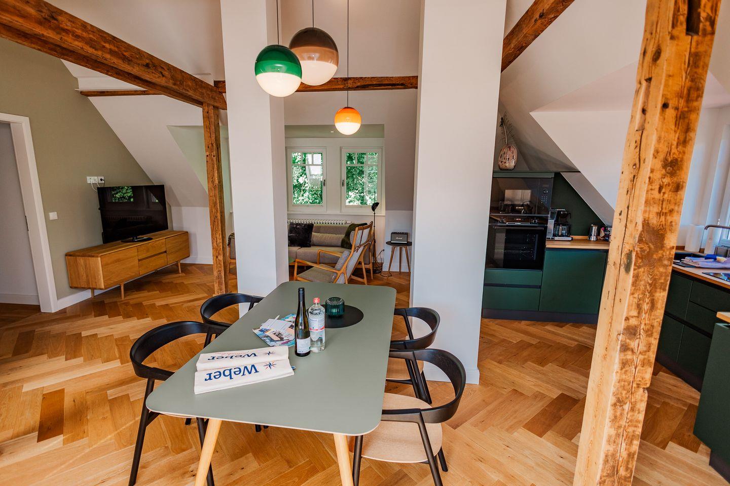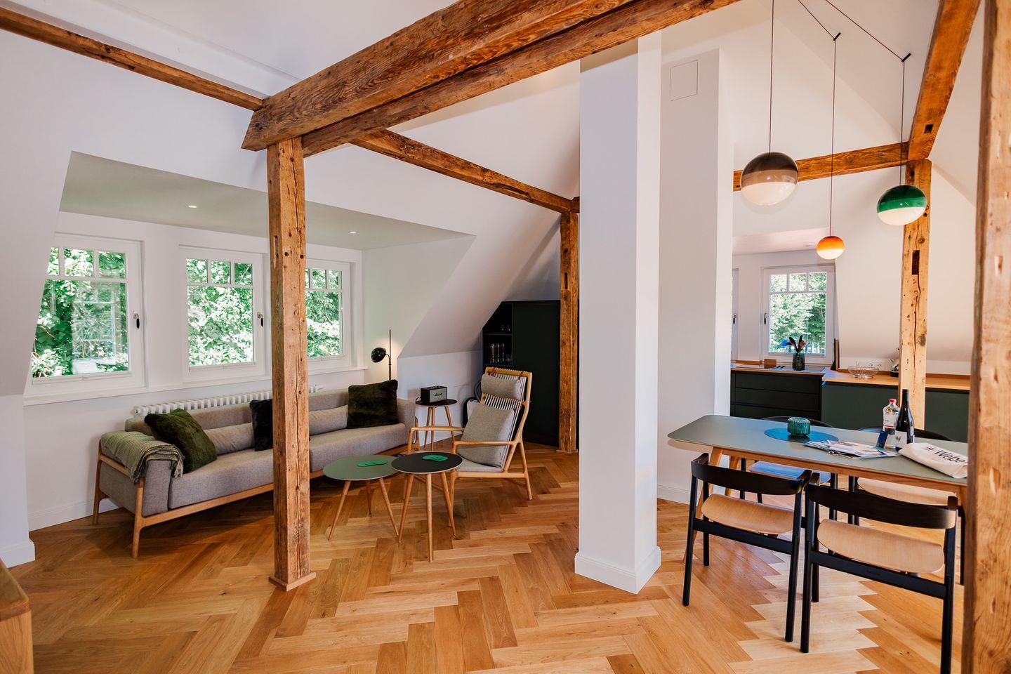 Hier konnten sich die Designer*innen austoben und mit Liebe zum Detail gestalten. Hochwertige und nachhaltige Einrichtung: Vollholzmöbel und Holzböden, hohe Decken - und insgesamt eine Gestaltung mit dem Gedanken zur Nachhaltigkeit; Qualität und stilvollem Design.