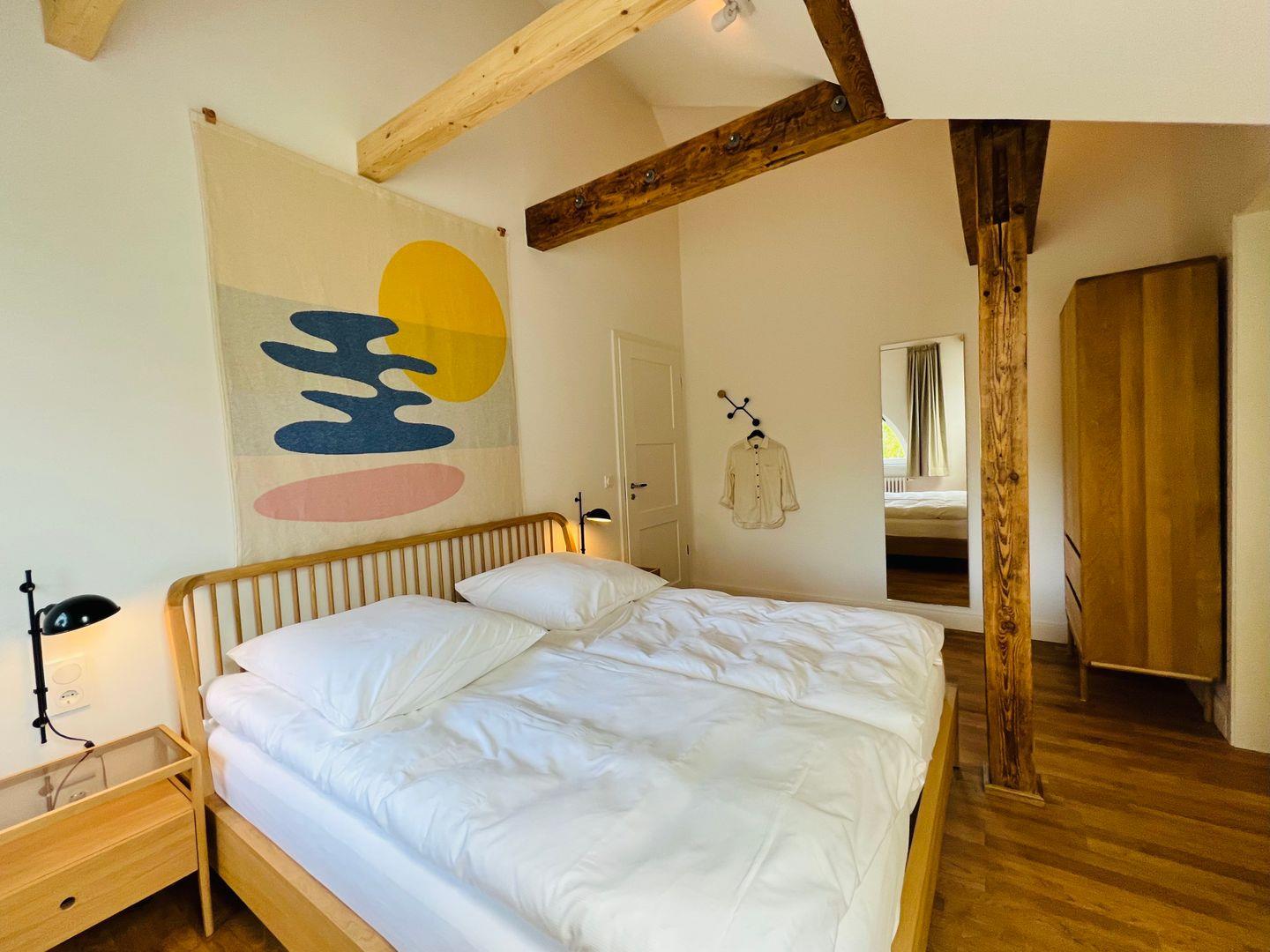 Exklusive Ferienwohnung in Strandnähe mit hochwertiger und nachhaltiger Einrichtung sowie eigenem Balkon mit Blick in die Natur.
