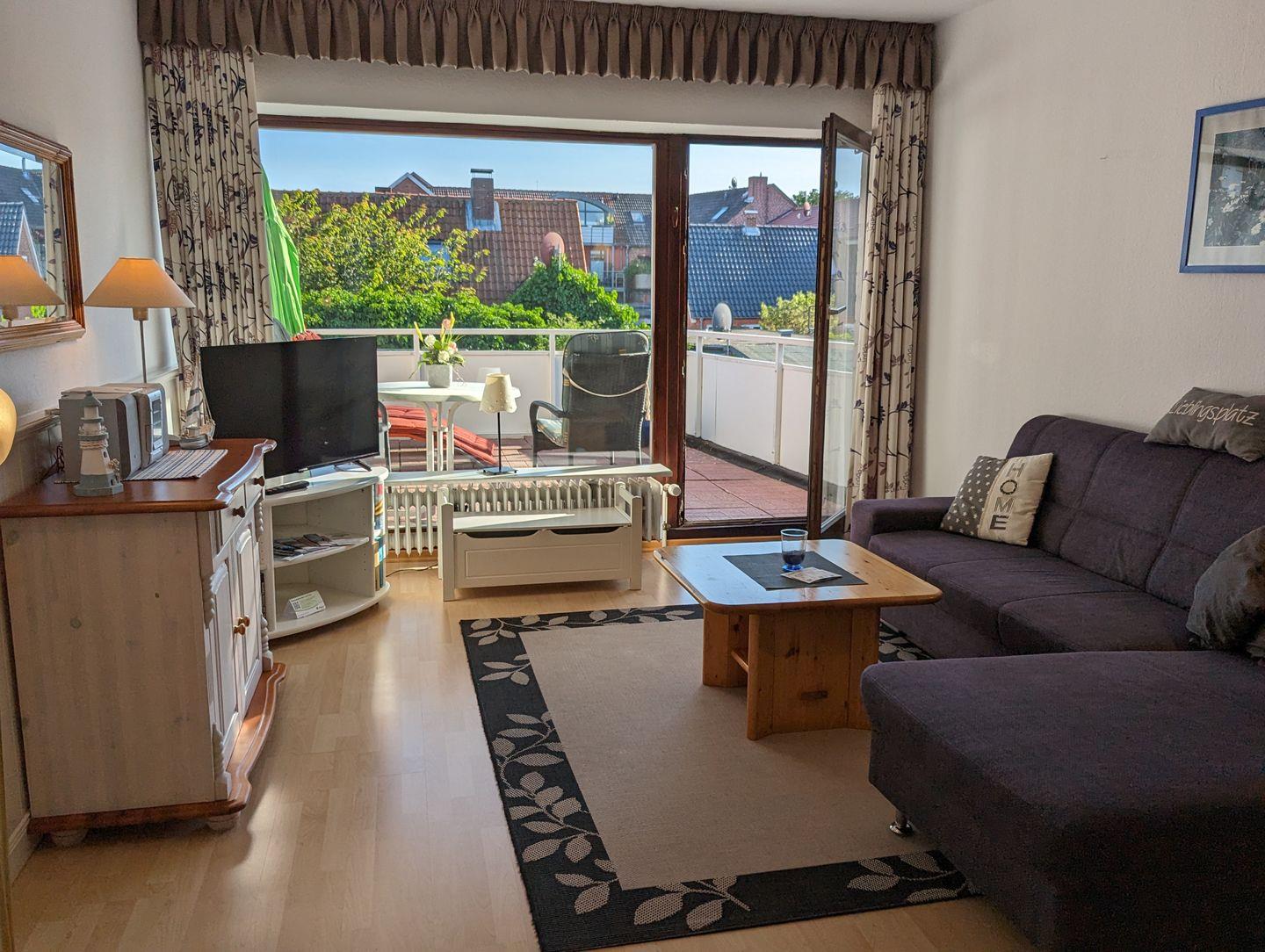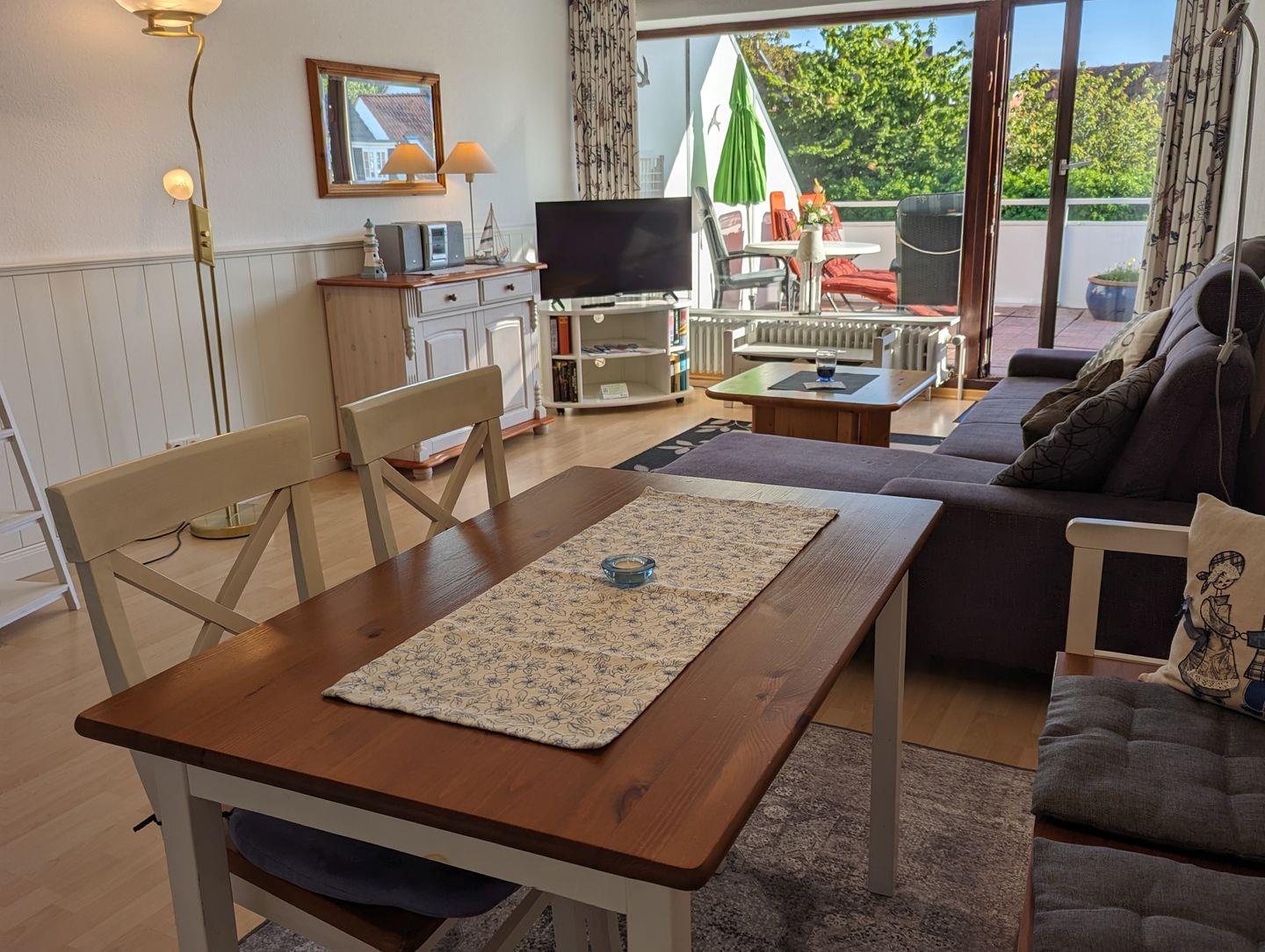 Zentrale Ferienwohnung Schwalbennest mit Süd-Balkon, nur 130 m vom Strand in Wyk auf Föhr entfernt.
