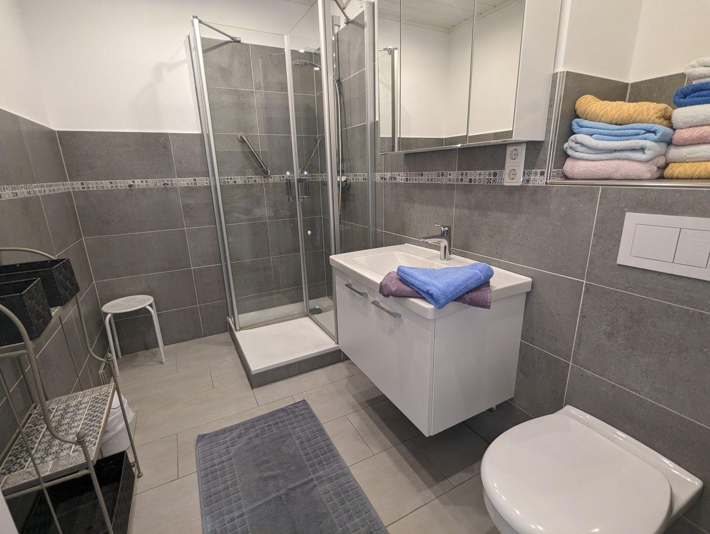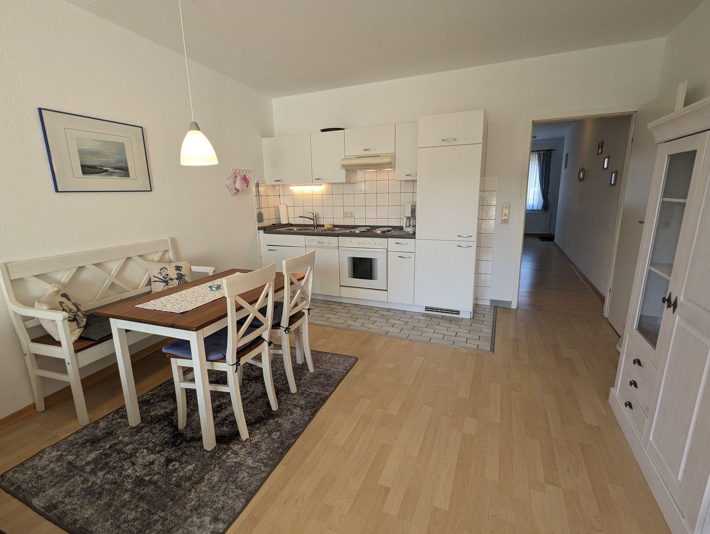 Die Wohnung ist wie folgt aufgeteilt: WOHNBEREICH (ein Sofa, ein Couchtisch, Sat-TV, CD-Player, kostenloses Internet), Süd-Balkon mit Gartenmöbel, vollausgestattete WOHNKÜCHE mit Essbereich (u.a. Esstisch mit 2 Stühlen und einer Bank, Geschirrspüler, Mikrowelle, Backofen, Ceranfeld, Kühlschrank mit Gefrierfach, Kaffeemaschine, Toaster, Eierkocher, Besteck und Töpfe), SCHLAFZIMMER mit einem Doppelbett (180 x 200 cm) und einem Kleiderschrank, BADEZIMMER mit Dusche, WC, Handtuchwärmer, Waschbecken, Spiegelschrank und Föhn, FLUR mit einer Garderobe für Jacken und Schuhe.