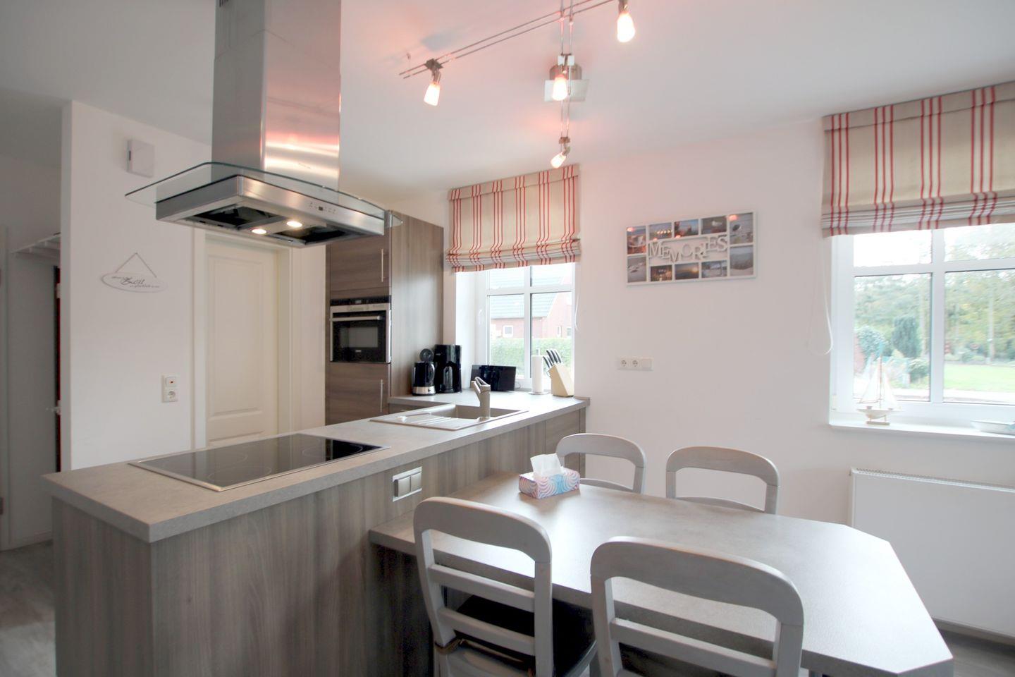 In der offenen sehr gut ausgestatteten KÜCHENZEILE macht das Kochen wirklich Spaß. Am Esstisch mit 4 Stühlen ist für alle ausreichend Platz. Zusätzlich ist hier auch ein Abstellraum.