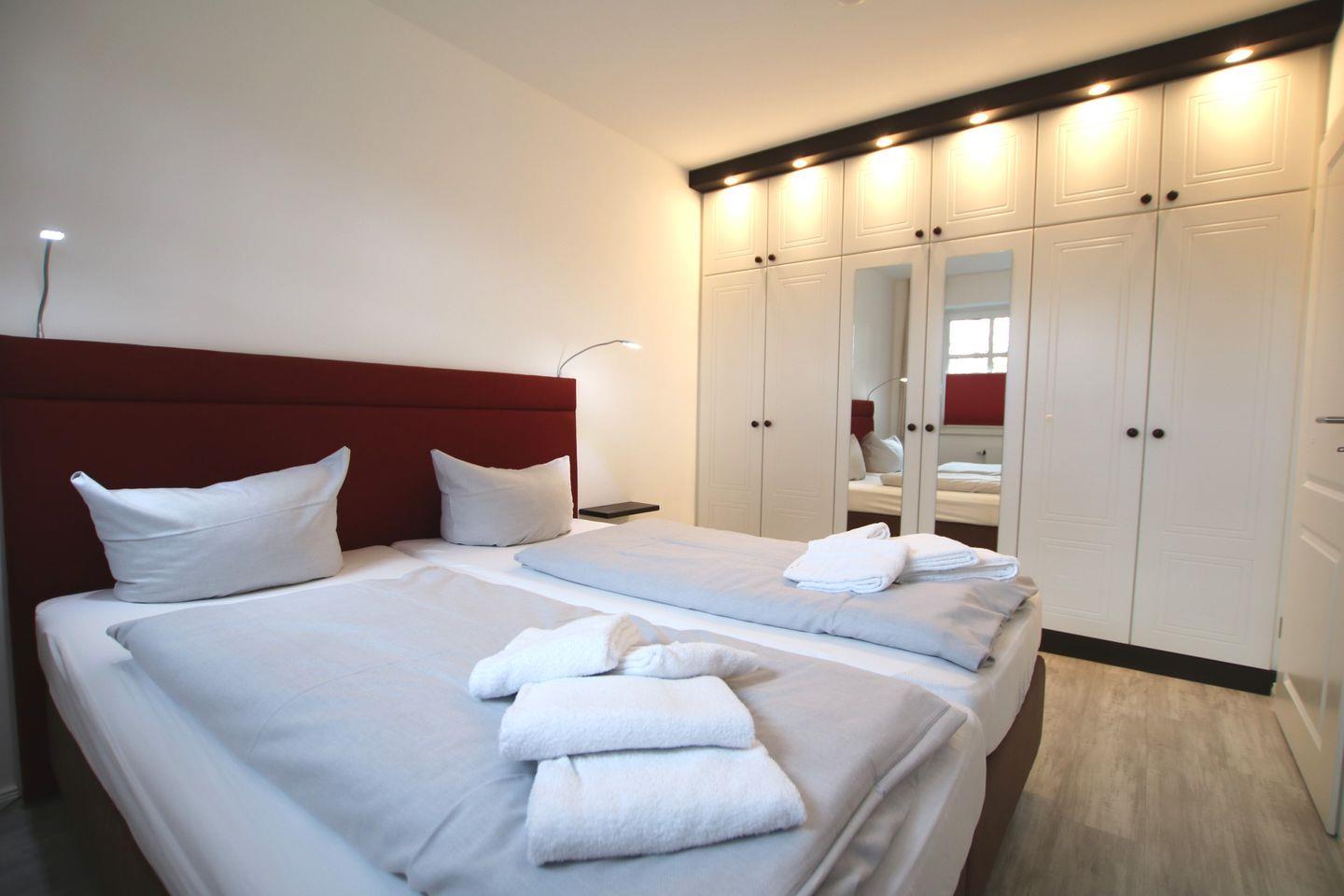 - Schlafzimmer 1 mit Doppelbett (1,80x2,00m), Kleiderschrank