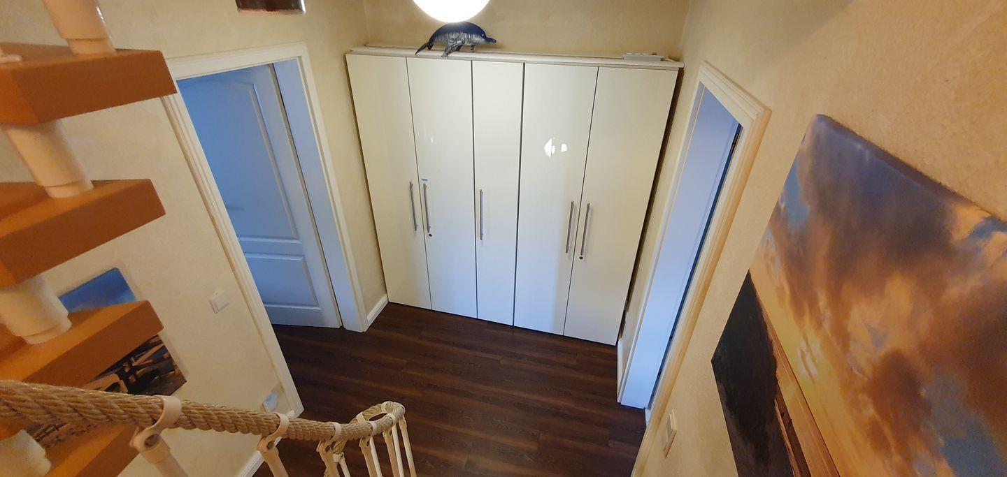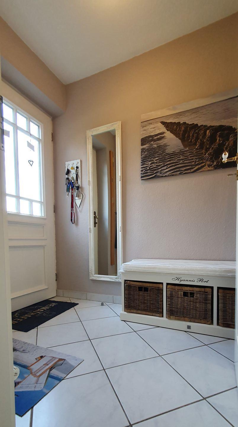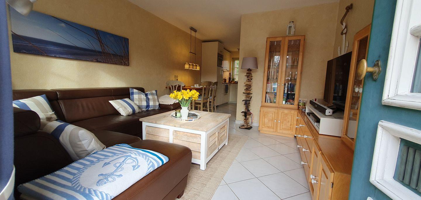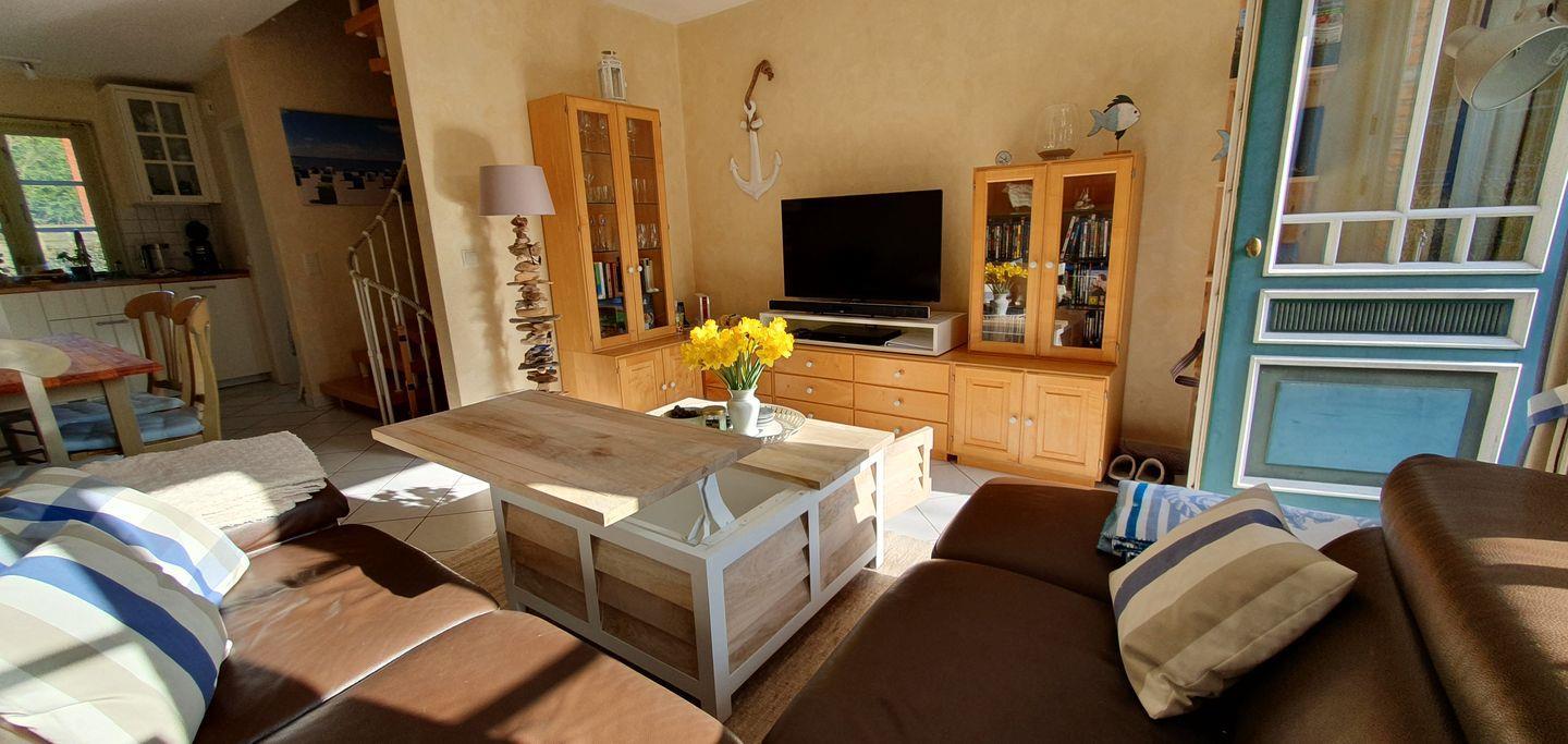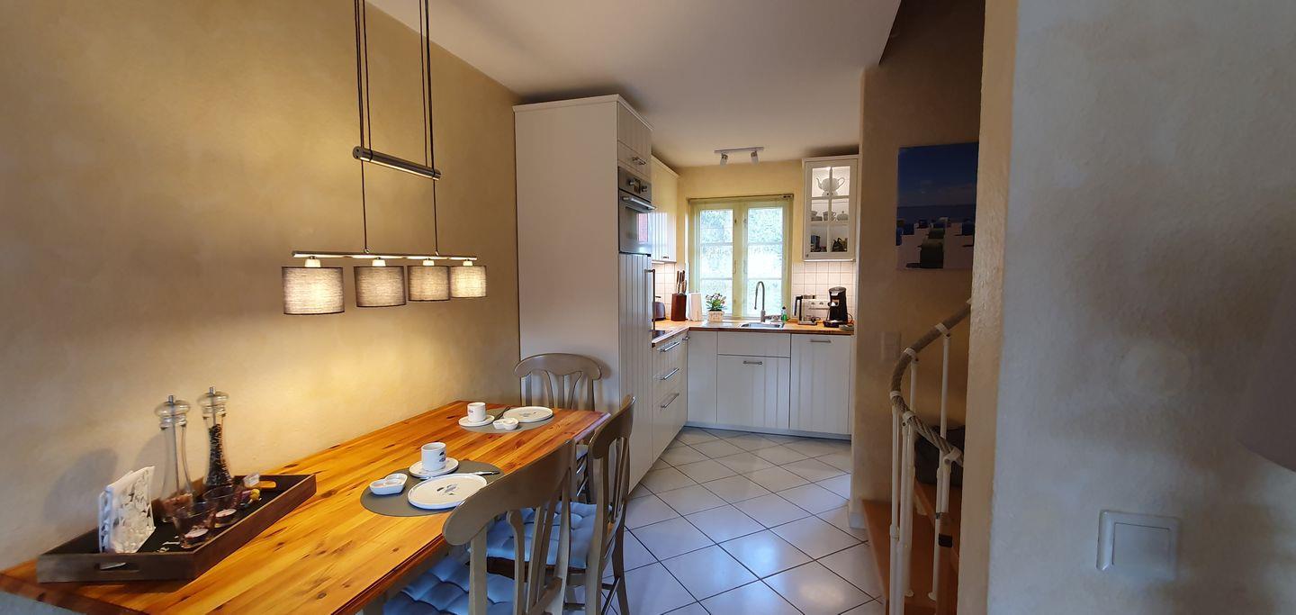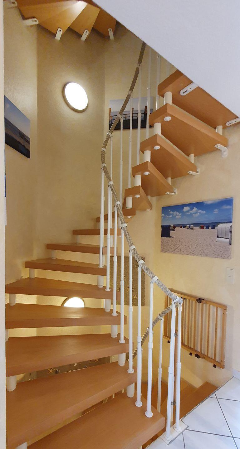 Das 75 qm große Reihenhaus (mit 4**** zertifiziert) erstreckt sich über 3 Etagen und bietet moderne Gemütlichkeit. Im offenen Erdgeschoss befinden sich der Wohn-, Ess- und Küchenbereich mit einer neuen, hochwertig ausgestatteten Küche. Der helle Wohnbereich führt direkt zum Garten mit Südterrasse, wo Sie entspannte Stunden im Freien verbringen können. Eine breite Wendeltreppe verbindet die Etagen.