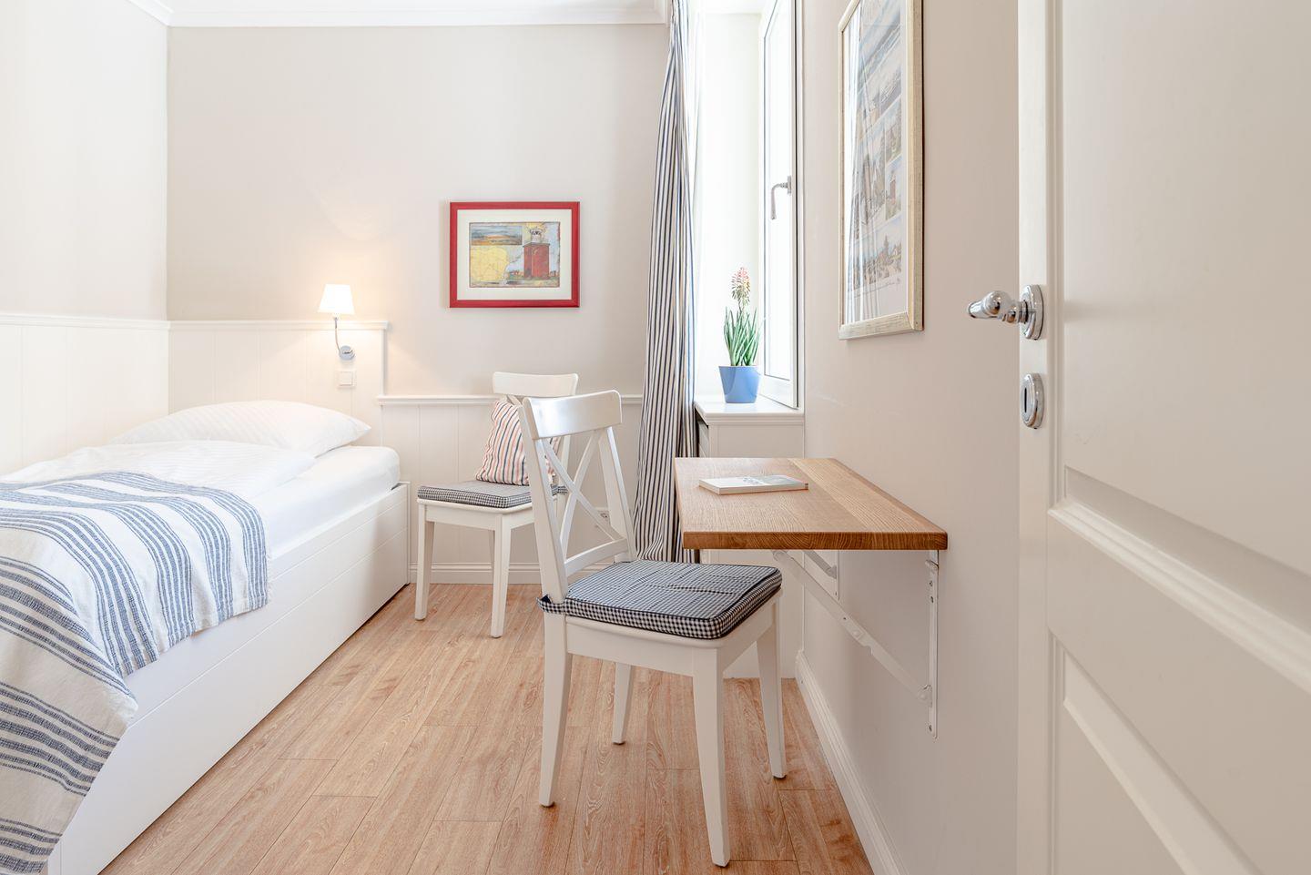 Die Ferienwohnung 25 im Haus Uthlande wurde im Jahr 2021 aufwendig renoviert und verfügt über 2 Schlafzimmer und 1 Bad und bietet somit komfortabel Platz für bis zu 4 Personen zuzüglich einer Kleinkinderaufbettung.