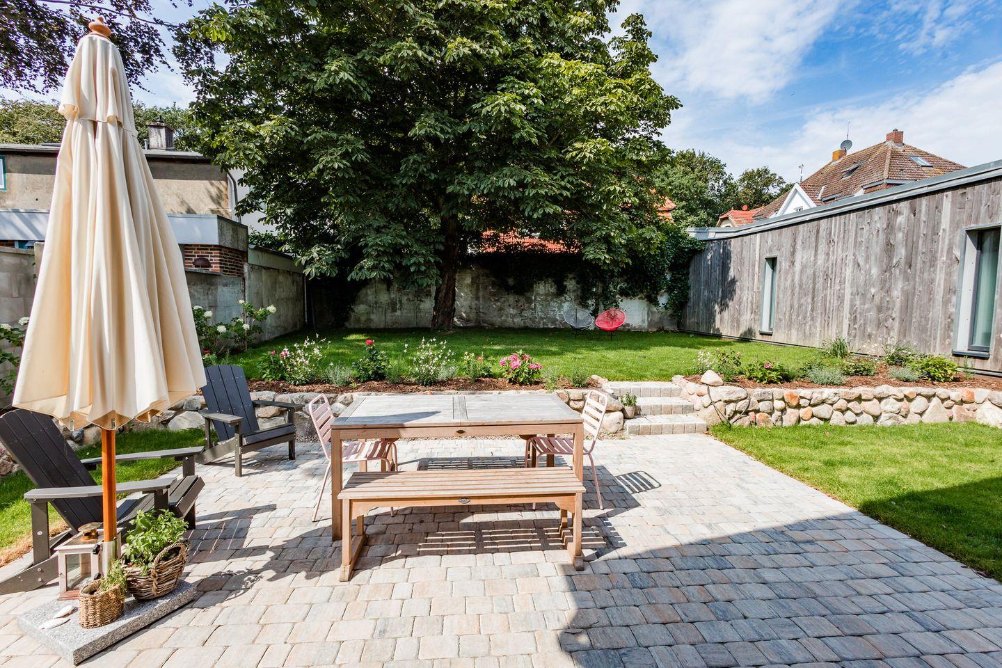 Zu den Highlights der Ferienunterkunft zählen wir u. a. die hochwertige Ausstattung und die eigene Terrasse im Garten, sowie die zentrale Lage.