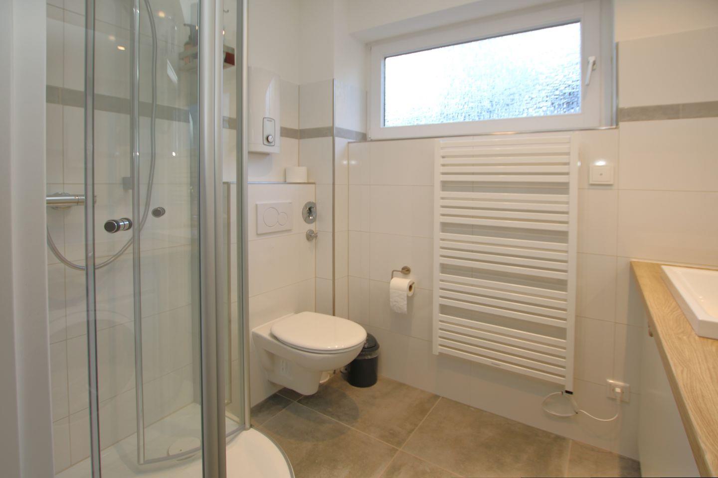 - Badezimmer mit Dusche/ WC und kleiner Waschmaschine