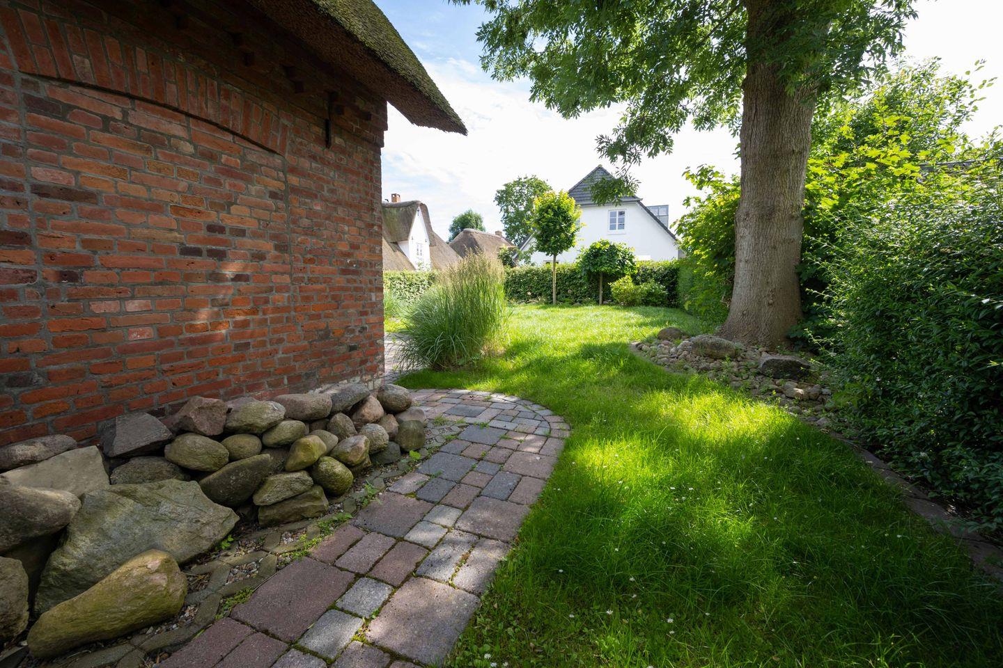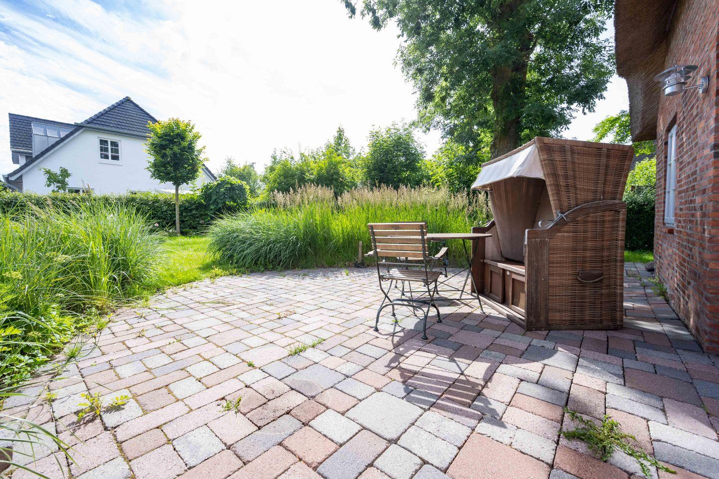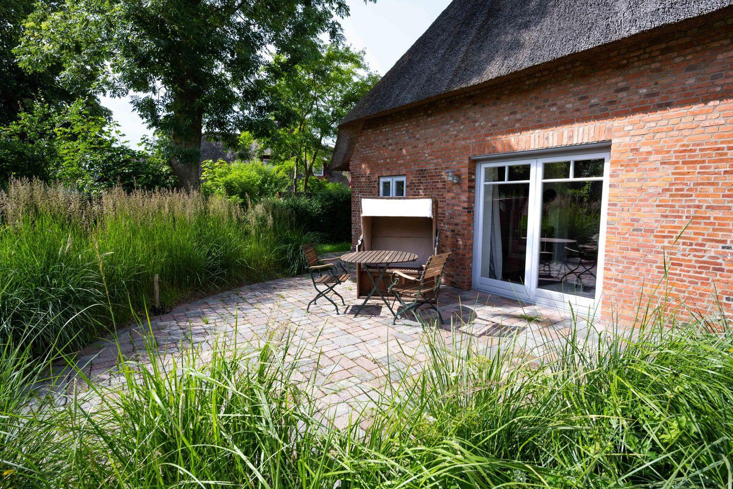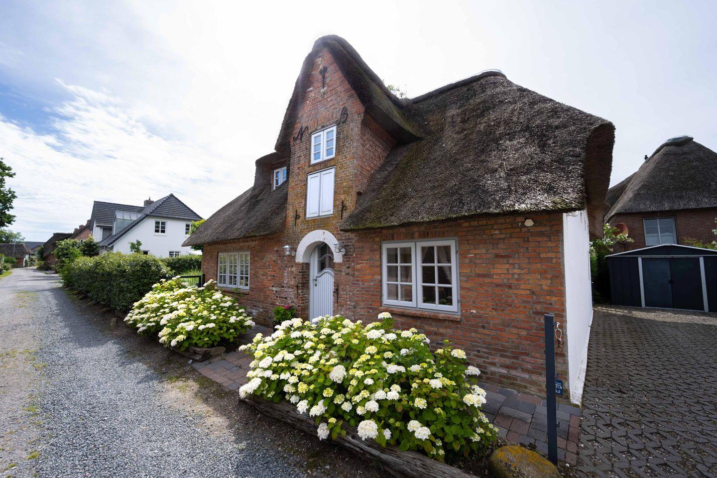 Genießen Sie entspannte Tage im Reetdachhaus Frida mit Kamin und großem Garten auf Föhr.