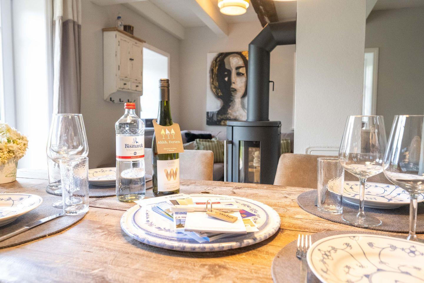 Zu den Highlights der Ferienunterkunft zählen wir u. a. den Kaminofen, die Terrasse mit Strandkorb im vollständig umzäunten und großzügigen Garten sowie die ruhige Lage.