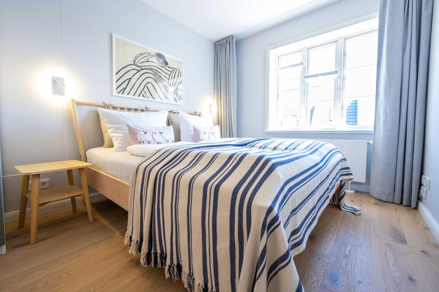 Die moderne Ferienwohnung Strandglück im alten Kapitänshaus wurde im Jahr 2024 aufwendig renoviert und verfügt über 1 Schlafzimmer und 1 Bad und bietet somit komfortabel Platz für bis zu 2 Erwachsene zuzüglich einer Kleinkinderaufbettung. Kleine und mittelgroße Hunde sind auf Anfrage herzlich willkommen.