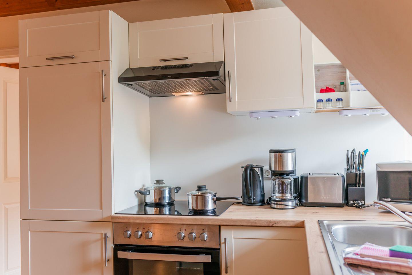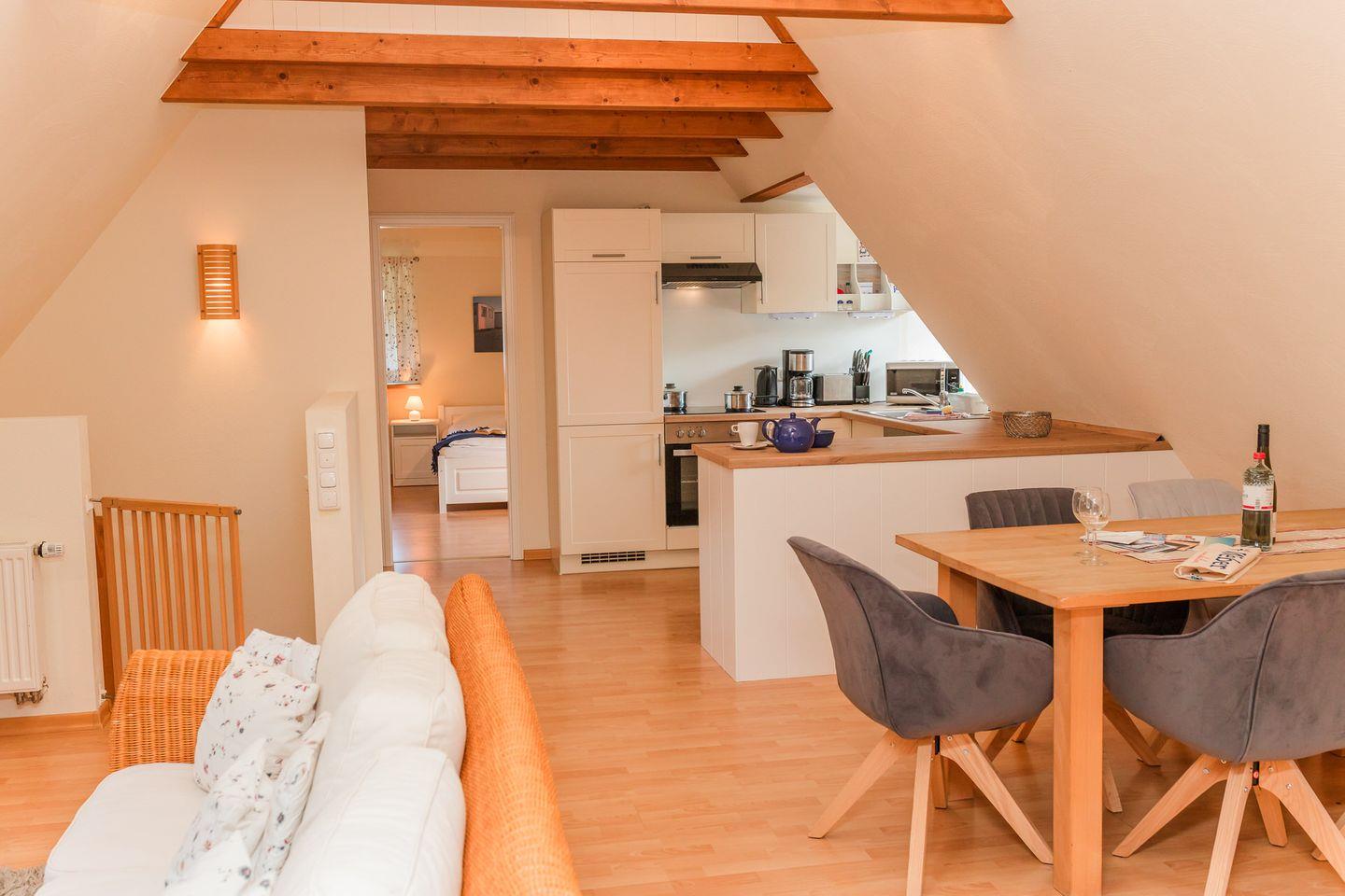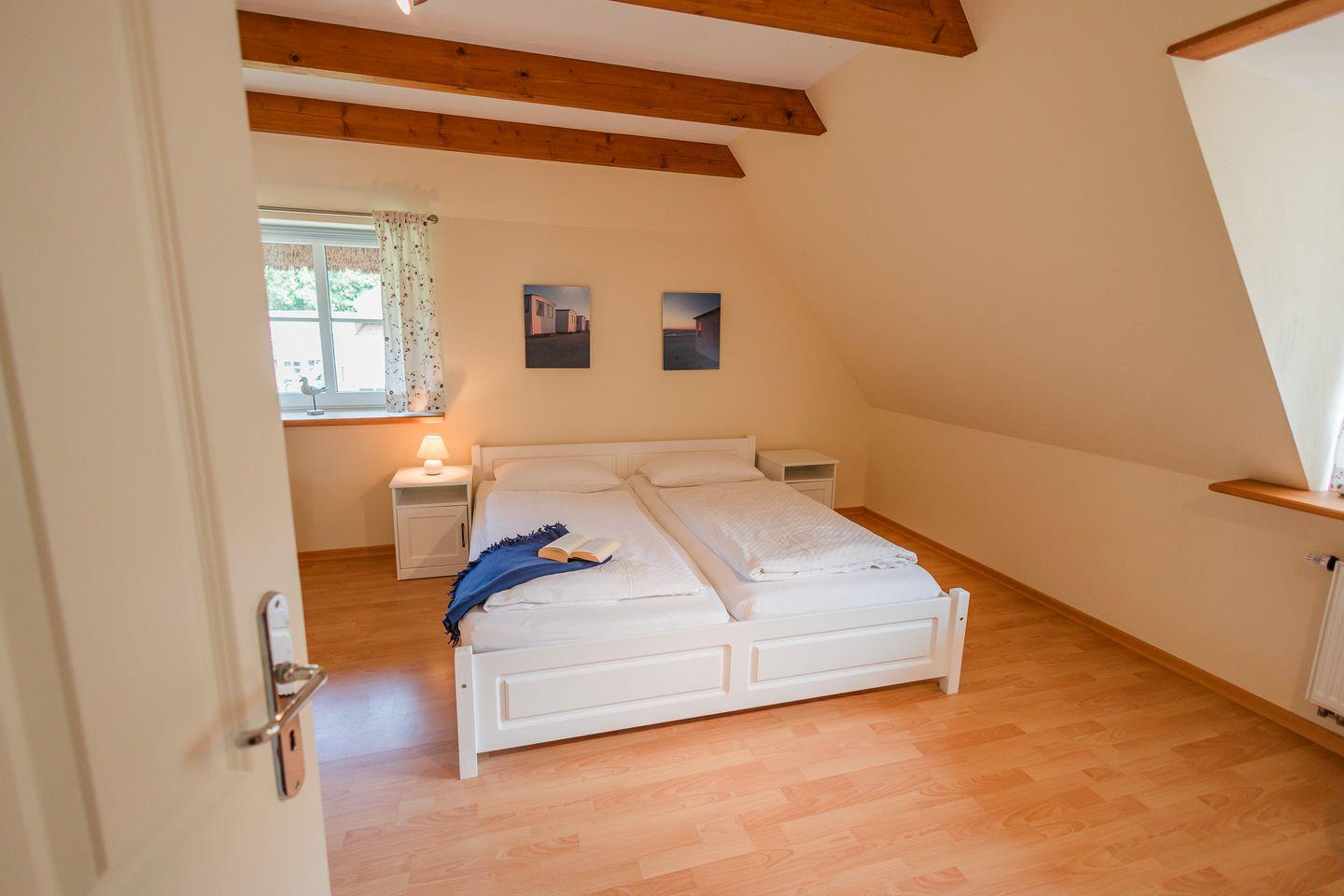 Die reetgedeckte Ferienwohnung Alkoven verfügt über 2 Schlafzimmer und 2 Bäder und bietet somit komfortabel Platz für bis zu 4 Personen zuzüglich einer Kleinkinderaufbettung.