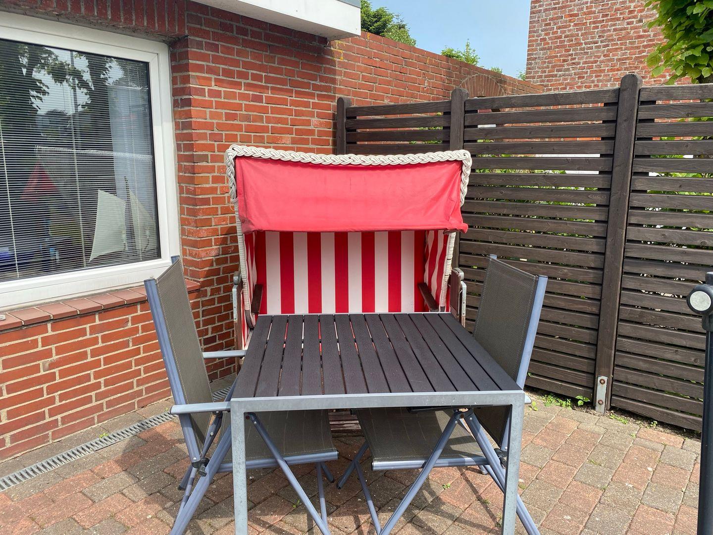 Besonders hervorzuheben ist die wunderschöne Terrasse, die Ihnen einen Blick auf den Garten und die einladenden Gartenmöbel bietet. Hier können Sie bei einem Kaffee oder einem Glas Wein die frische Nordseeluft genießen und die Seele baumeln lassen. Lassen Sie Ihre Kinder in der liegenden Wiese spielen, während Sie entspannen und den Blick in die Natur genießen.