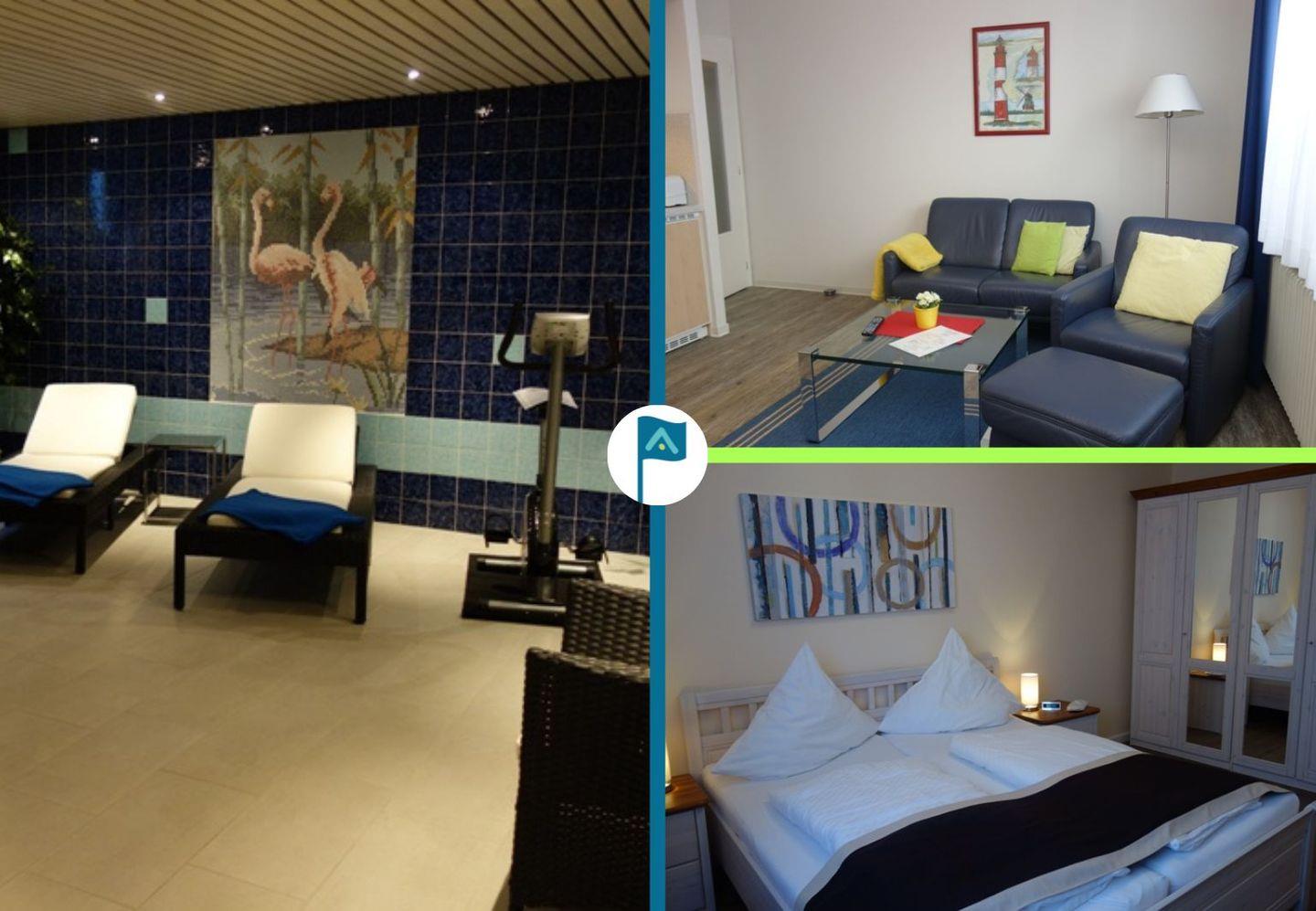 Charmante Ferienwohnung in bester Lage von Wyk auf Föhr, nur 100 m vom Strand und mit Sauna und Fitnessbereich im Keller.