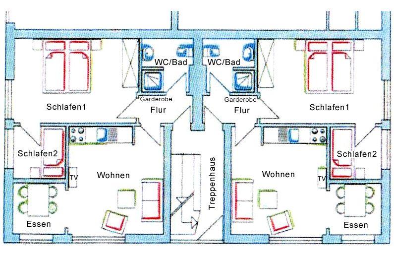Die Wohnung 3 liegt in der 1. Etage bietet Platz für bis zu drei Personen. Sie ist ideal für alle, die Komfort und eine zentrale Lage (Fußgängerzone) schätzen. Es erwartet Sie ein gemütlicher Wohn-Ess-Küchen-Bereich, ein Schlafzimmer mit Doppelbett (2*90*200cm) und ein Schlafzimmer mit einem Einzelbett (90*200cm) sowie eine große, sonnige Dachterrasse.