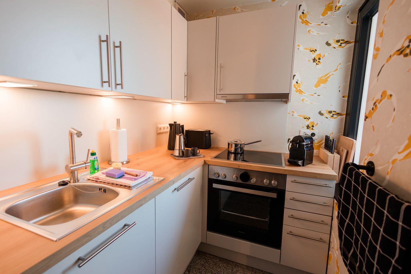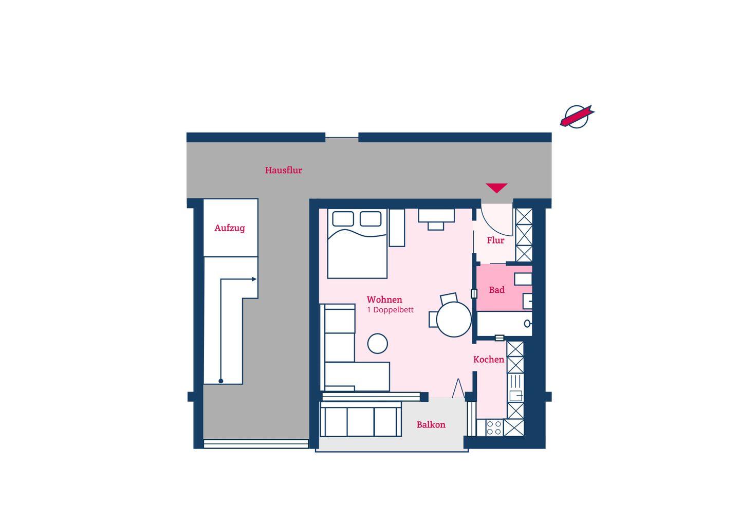 Die Wohnung ist im vierten Obergeschoss gelegen und lässt sich bequem per Fahrstuhl erreichen. Sie unterteilt sich in ein großzügiges Wohn- und Schlafzimmer mit offener Küche und ein Duschbad, sowie einen überdachten Balkon in Nordwest-Ausrichtung mit Lounge-Sofa. Im Gemeinschaftsbereich des Hauses stehen Ihnen Waschmaschine und Trockner gegen eine kleine Gebühr zur Verfügung.