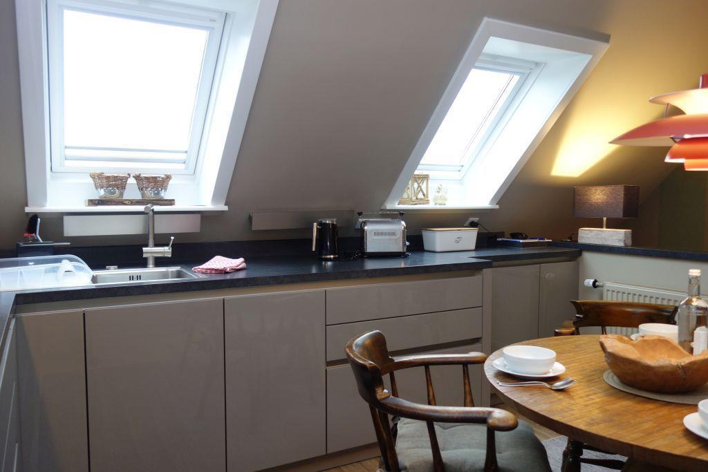 Diese geräumige und stilvolle Obergeschosswohnung bietet vier Personen den perfekten Rückzugsort für einen entspannten Urlaub. Der gemütliche Essplatz in der modernen Küche lädt zu gemeinsamen Mahlzeiten ein, während das zweigeteilte Wohnzimmer sowohl einen Bereich zum entspannten Lesen als auch einen separaten Bereich zum Fernsehen bietet – so findet jeder seinen Lieblingsplatz.