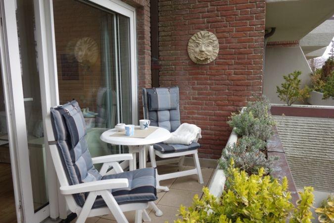 Genießen Sie die Sonne auf dem eigenen Süd-Balkon, von dem Sie einen herrlichen Blick haben. Sie werden hier in Ruhe sitzen und manchmal das Meer sogar hören können.