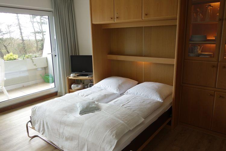 Die Wohnung bietet eine hochwertige Ausstattung und sorgt für einen komfortablen Aufenthalt. Das große Schrankbett im Wohnzimmer ist mit hochwertigen Matratzen ausgestattet und sorgt für einen erholsamen Schlaf. Im Schlafzimmer befinden sich zwei Einzelbetten, die besonders für Paare geeignet sind, die gern getrennt schlafen möchten.