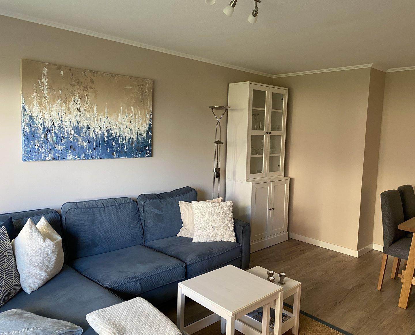 Die Ferienwohnung überzeugt durch ein modernes und gemütliches Ambiente. Ein stilvolles Schlafzimmer mit komfortablem Bett (180*200 cm) sorgt für einen erholsamen Schlaf. Im Wohnzimmer erwartet Sie eine einladende Sofaecke, die zum Entspannen einlädt, sowie ein Esstisch für gemeinsame Mahlzeiten oder Spieleabende. Genießen Sie die Annehmlichkeiten eines Flachbildfernsehers und kostenfreies WLAN, damit Sie auch während Ihres Aufenthalts gut vernetzt bleiben.