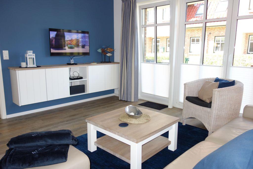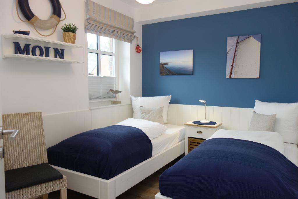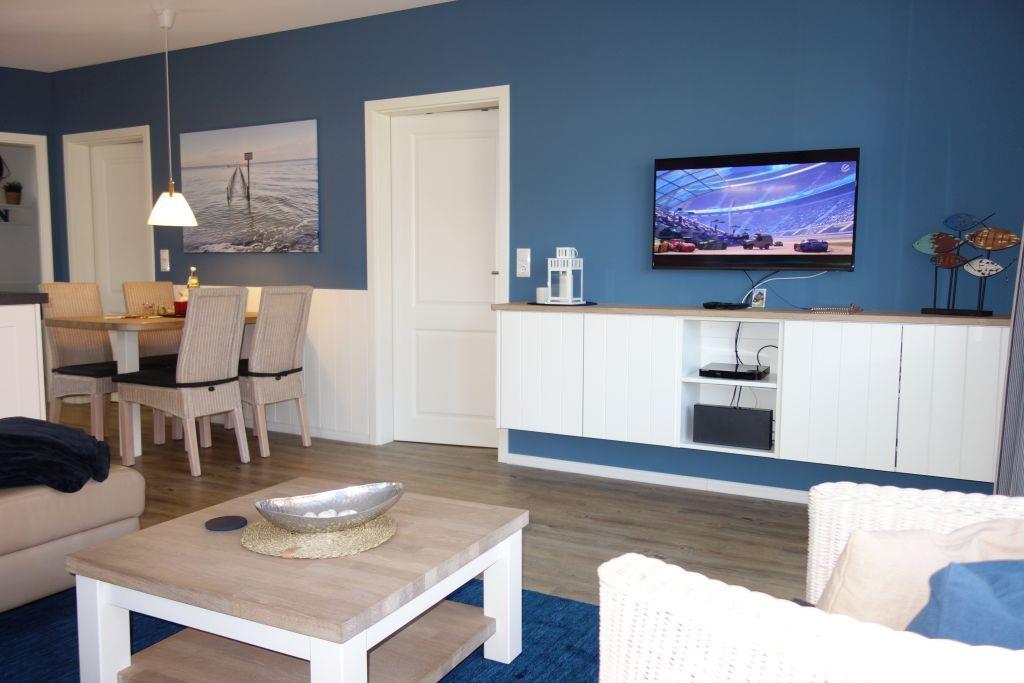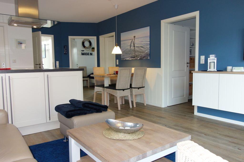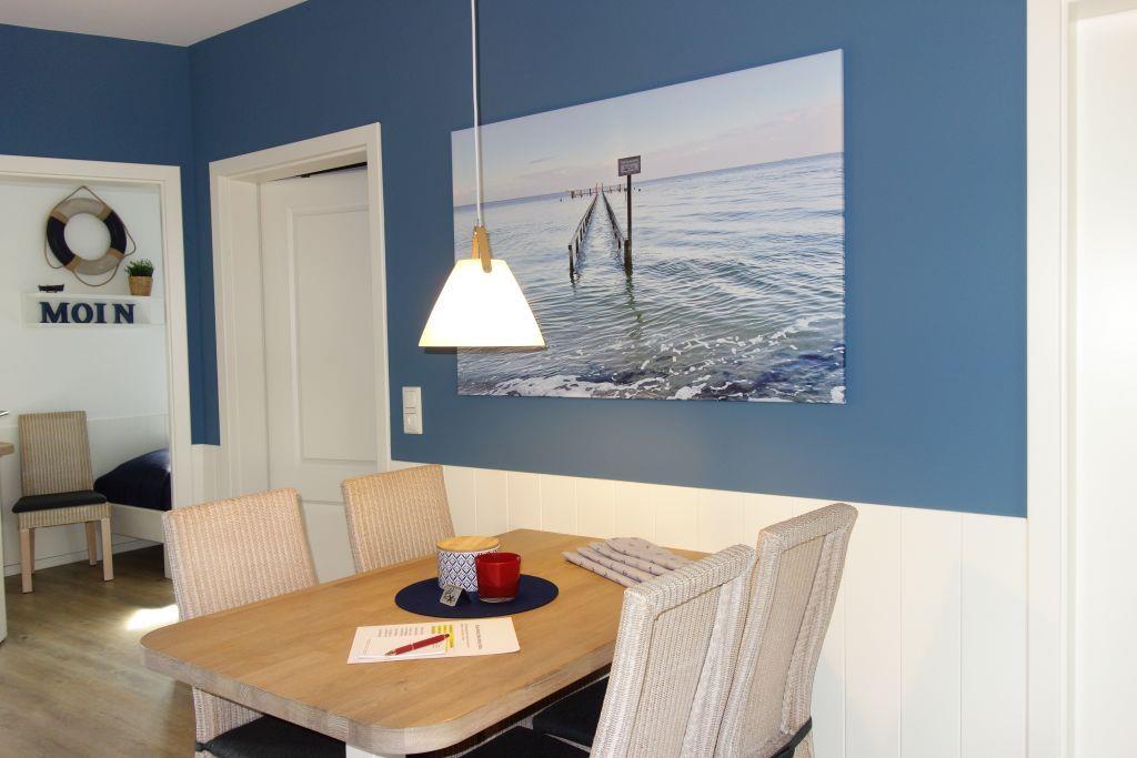 Die liebevoll eingerichtete Wohnung 3 im Erdgeschoss (rechts im Haus) empfängt Sie mit einer stilvollen Einrichtung in maritimen Farben, die Sonne, Sand und Meer verkörpern. Hier erwartet Sie ein Wohlfühlambiente, das zum Entspannen einlädt.