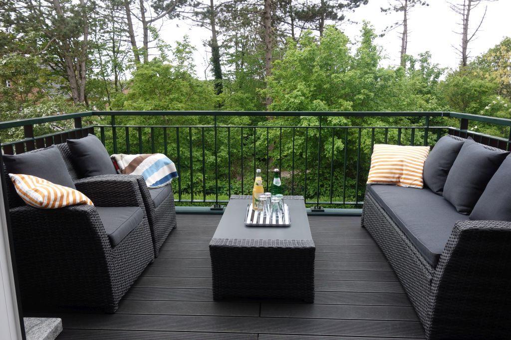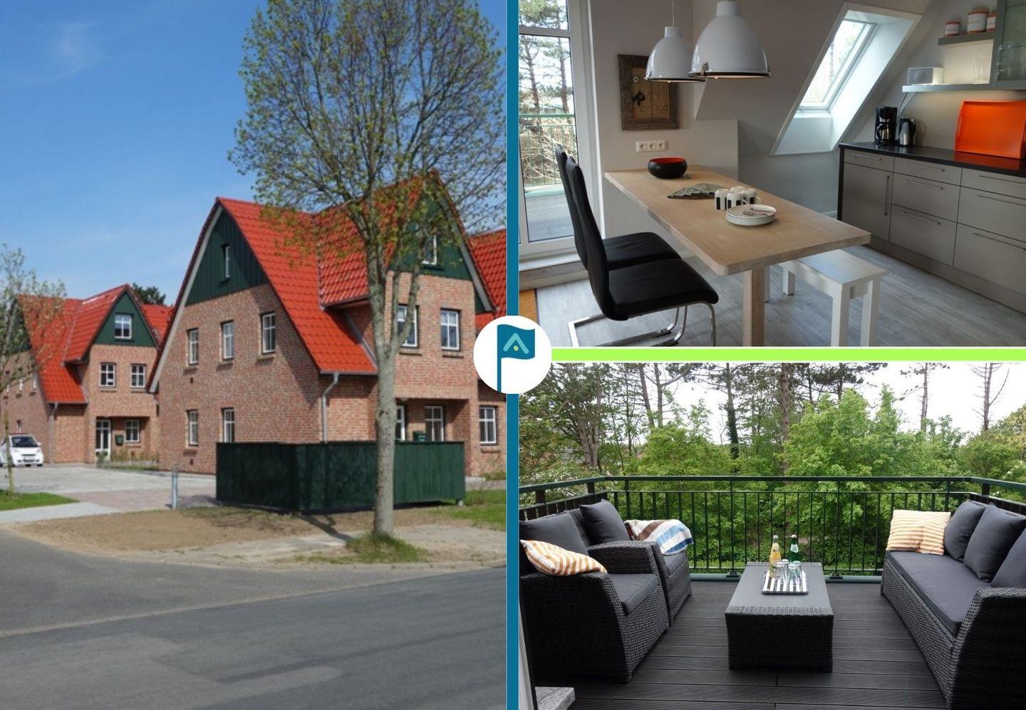 Modernes Penthouse Haus Paul 10 in Wyk auf Föhr mit Balkon und grünem Ausblick.
