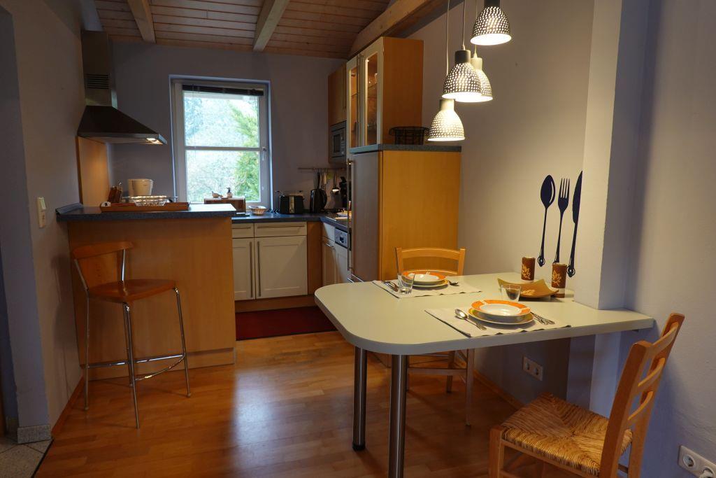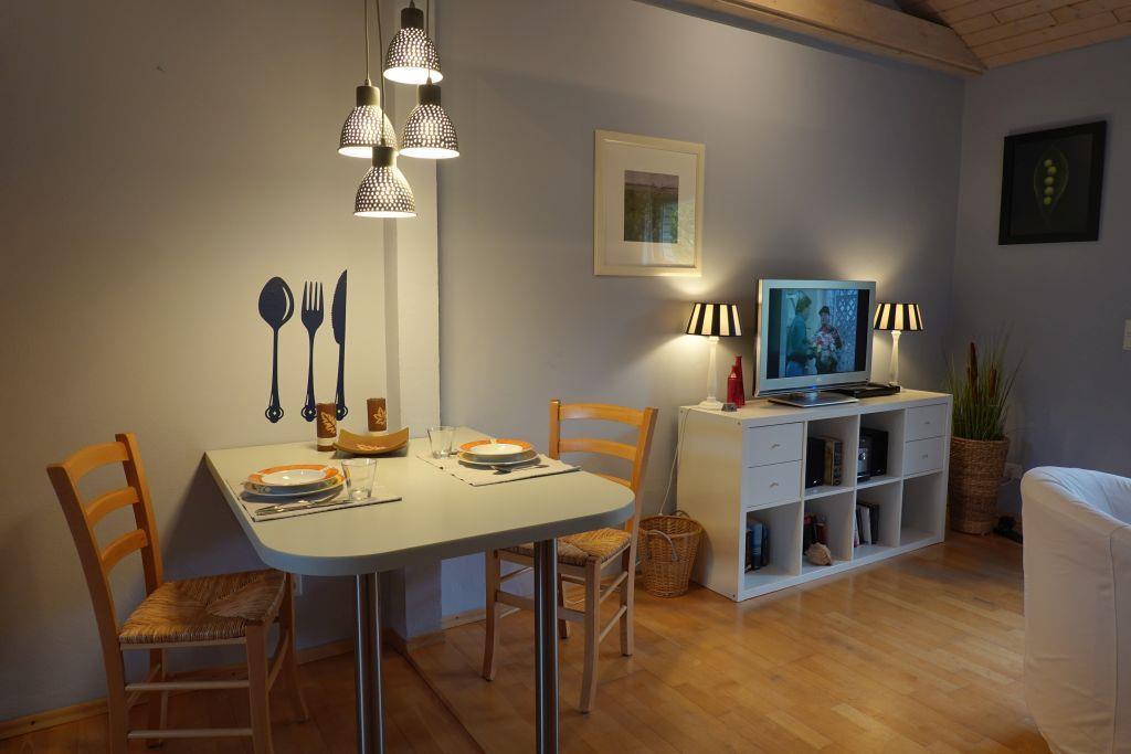 Die Wohnung besticht durch ihre gemütliche Einrichtung. Im offenen Wohnbereich lädt eine komfortable Sofaecke zum Entspannen ein, während der Esstisch ausreichend Platz für gemeinsame Mahlzeiten bietet. Hier können Sie Ihre Tage mit einem köstlichen Frühstück beginnen oder den Abend bei einem Glas Wein ausklingen lassen. Die Küche ist komplett ausgestattet mit allen notwendigen Küchenutensilien.