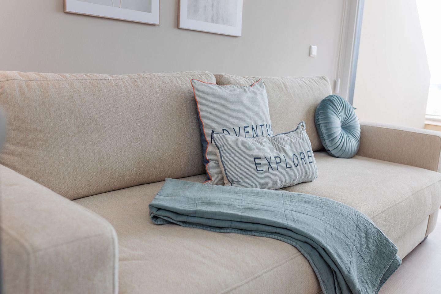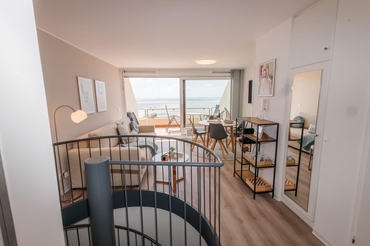 Strandnahe Ferienwohnung mit Balkon und traumhaft schönem Meerblick, sowie gemeinschaftlich genutzter Sauna und Schwimmbad.