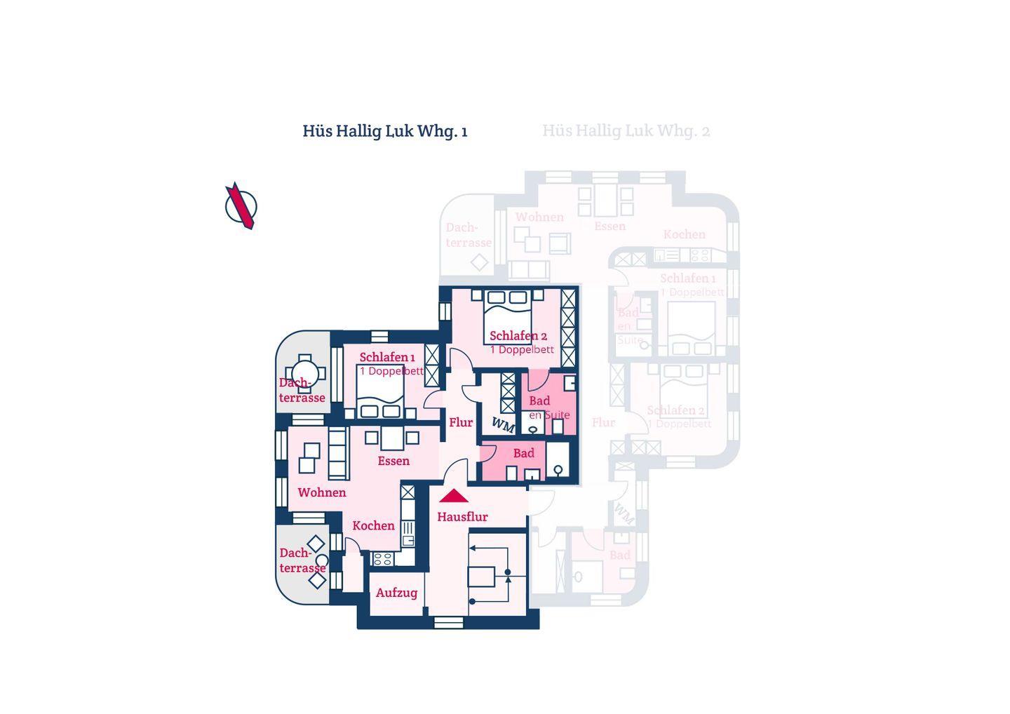 Die Ferienwohnung 1 im Hüs Hallig Luk, verfügt über 2 Schlafzimmer und 2 Bäder und bietet somit komfortabel Platz für bis zu 4 Personen zuzüglich einer Kleinkinderaufbettung. Auch bis zu 2 Hunde sind herzlich willkommen.
