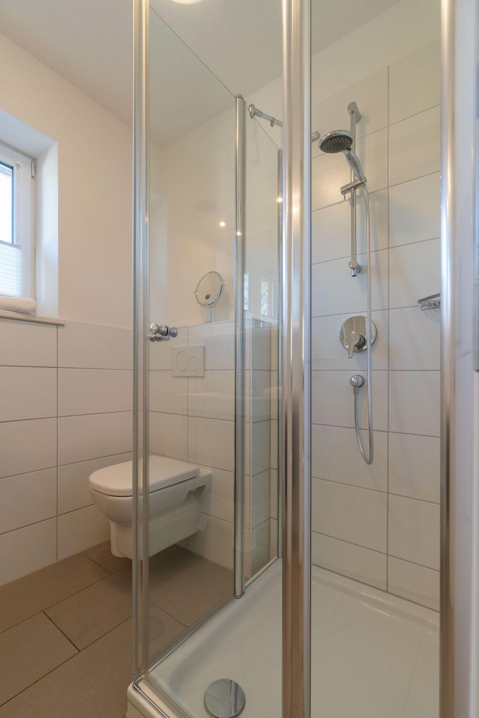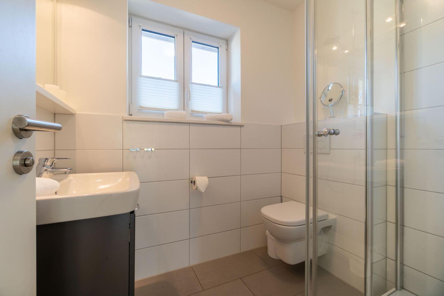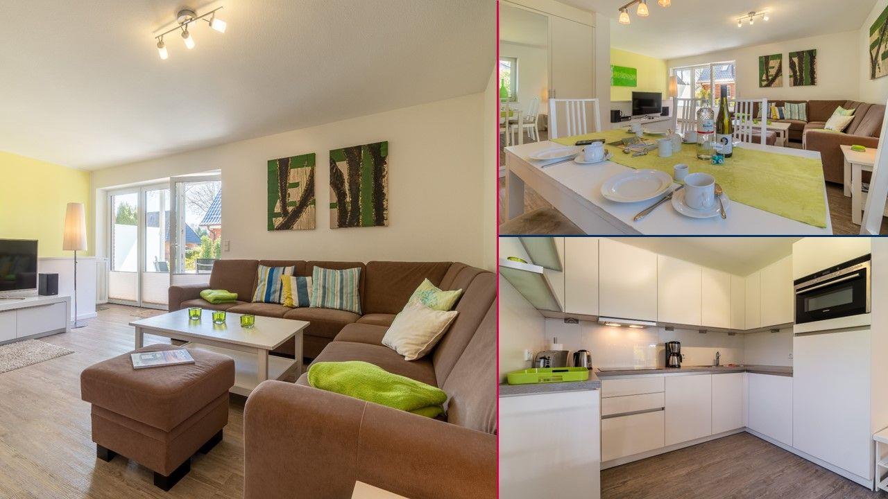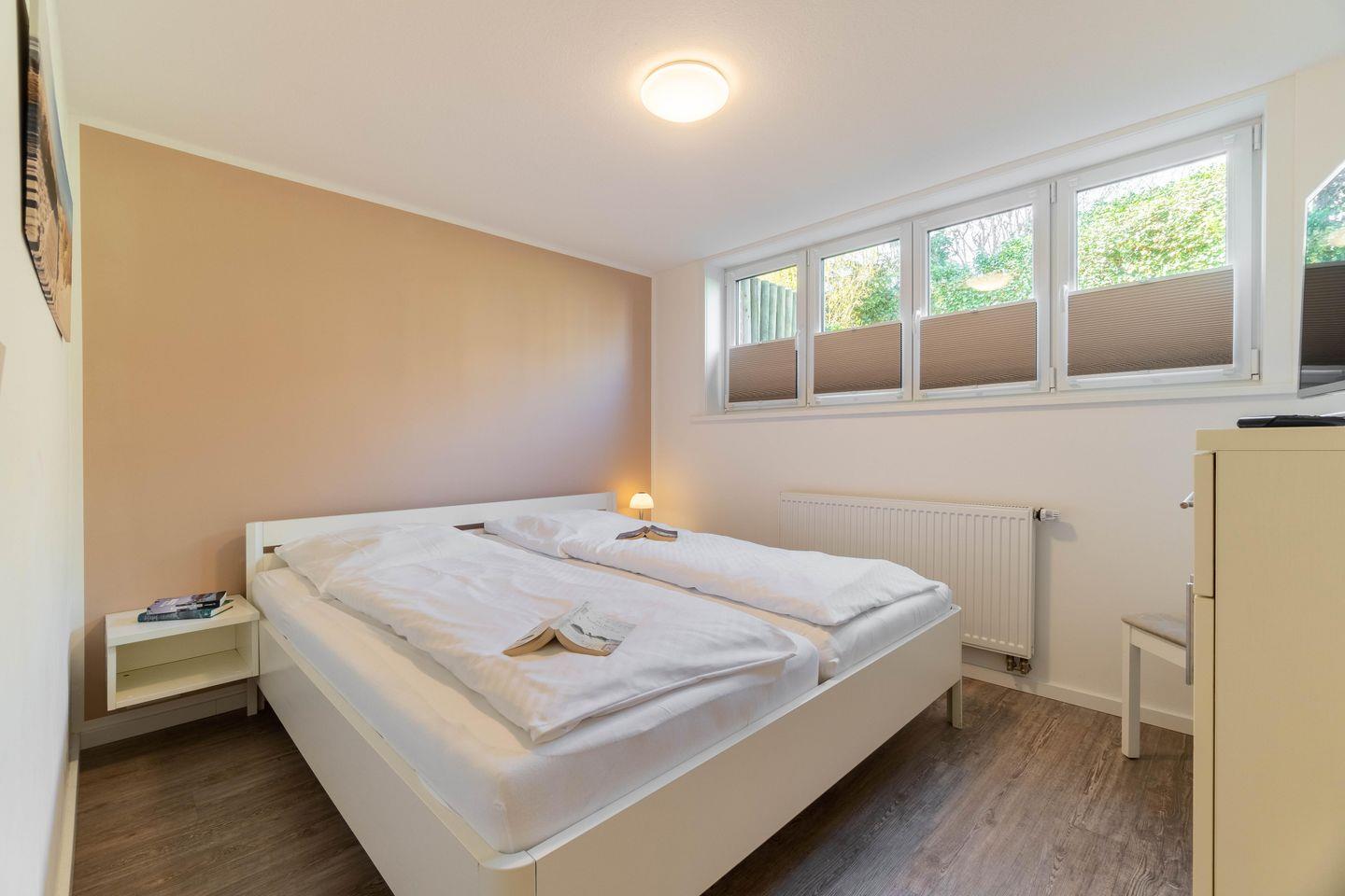 Die Ferienwohnung 2 überzeugt durch den großen, kombinierten Wohn-Essbereich mit der komplett ausgestatteten, integrierten Küche. Von hier aus haben Sie auch einen direkten Zugang auf die Terrasse und in den Garten. Die Wohnung verfügt über drei Schlafzimmer im Souterrain sowie über zwei Duschbäder mit Fußbodenheizung. Die moderne Ausstattung der Wohnung wird Sie überzeugen, ebenso wie der große Smart-TV im Wohnbereich. Ein Flachbildfernseher ist auch in einem der beiden Schlafzimmer vorhanden.