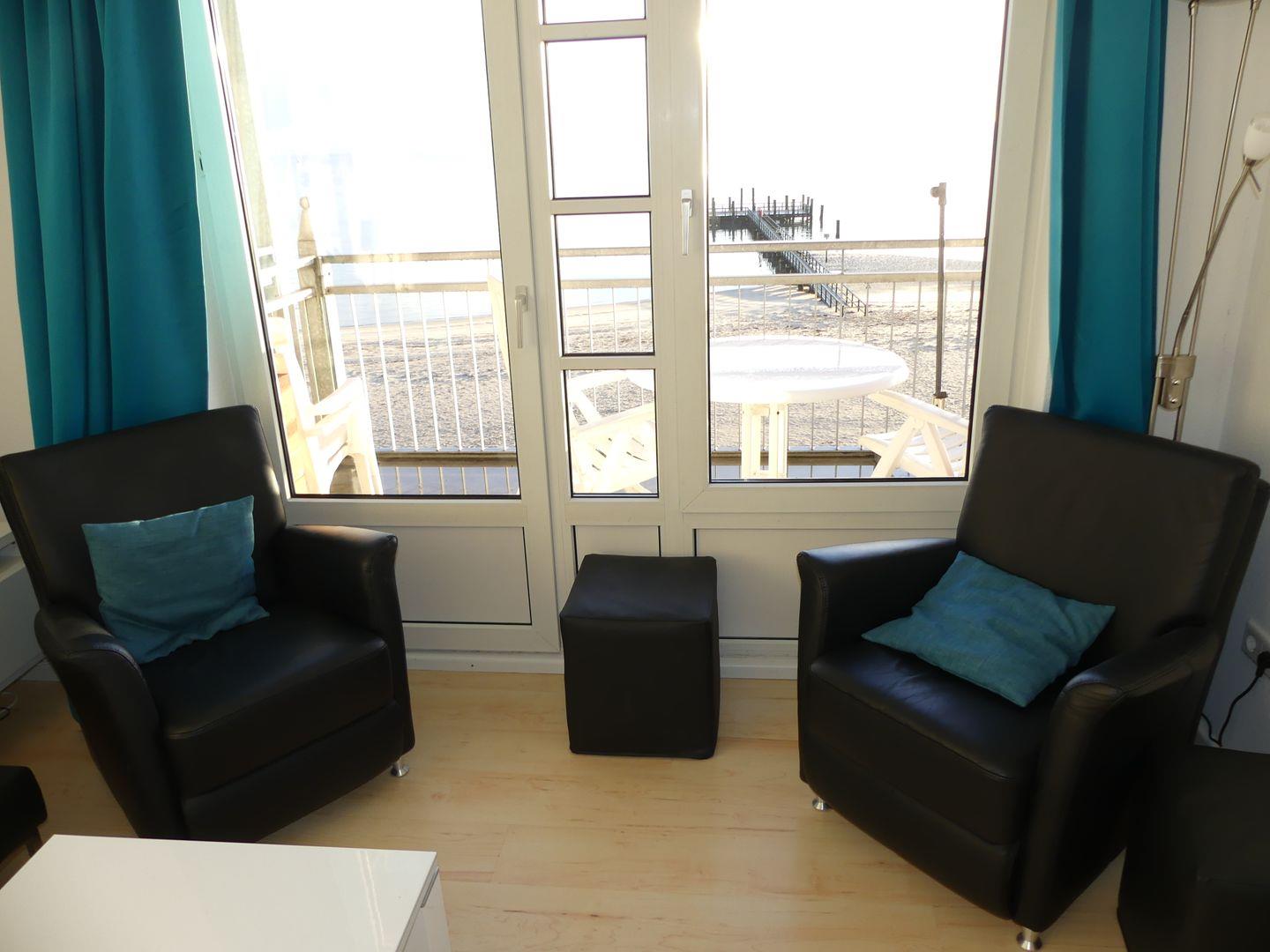 Die Wohnung befindet sich im 2.OG mit einer besonders guten Aussicht auf den Strand und das Meer. Einmalig ist der weite Blick aus dem südöstlich zum Meer ausgerichteten, bodentiefen Fenstern im Wohnzimmer. Genießen Sie schöne Stunden auch auf dem Balkon vor dem Wohnzimmer unmittelbar an der Strandpromenade oder das rauschende Meer bei offenen Fenstern.