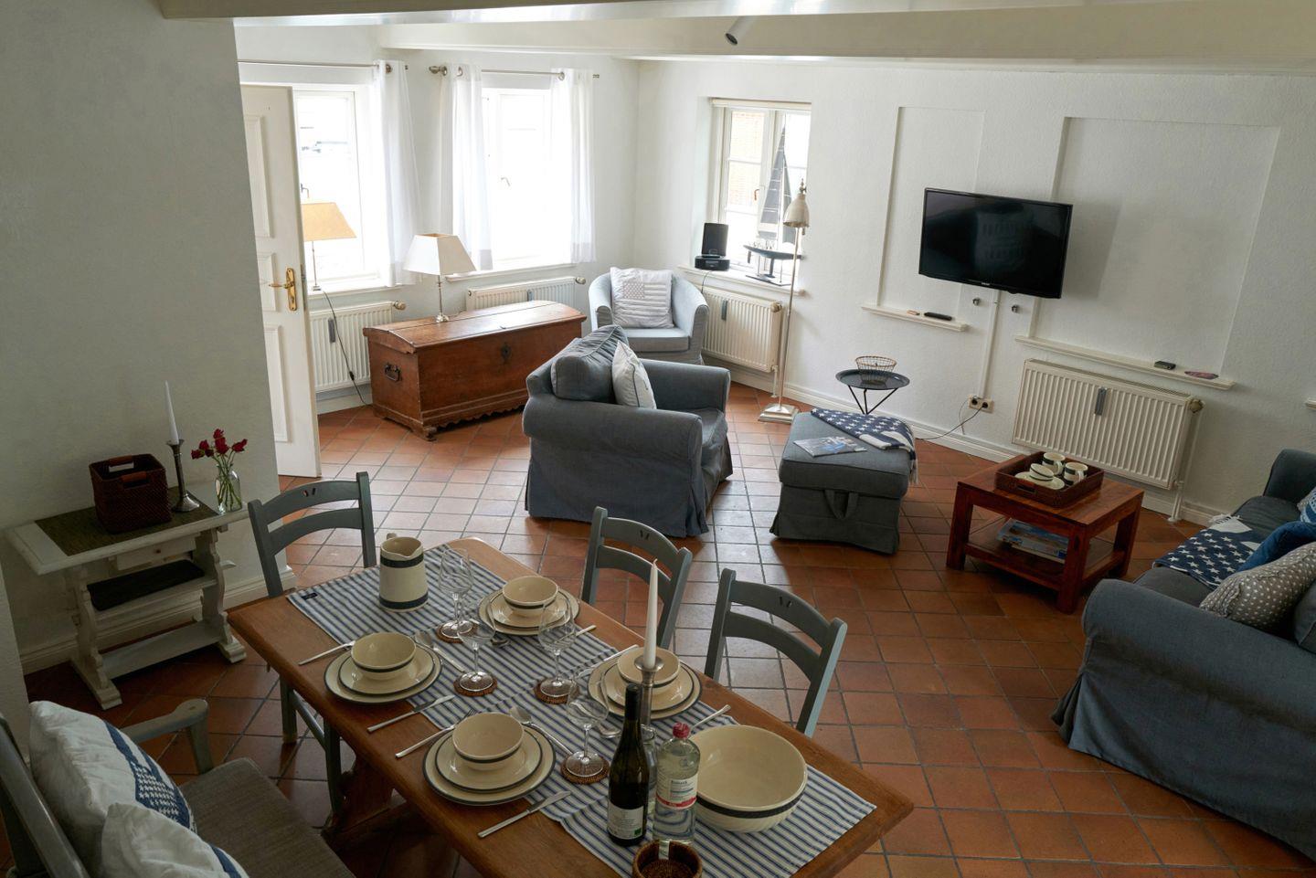 Historische Doppelhaushälfte für bis zu 5 Personen im Herzen von Wyk. Zentral und ruhig gelegen, nur 250 m vom Strand entfernt. Stilvoll eingerichtet mit Lexington Home, private Terrasse, 3 Schlafzimmer, 2 Bäder, WLAN. SUP und Mountainbike kostenfrei (nach Verfügbarkeit). Hund willkommen.