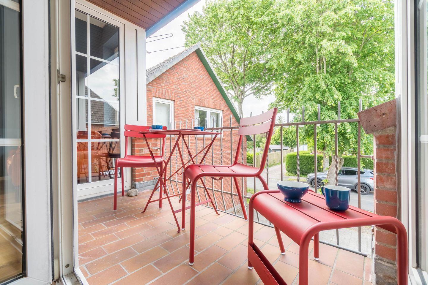Die Wohnung ist sehr zentral in der Wyker Innenstadt gelegen. Von dort aus können Sie alles fußläufig erreichen, auch den begehrten Wyker Badestrand. Auf dem Balkon lassen sich gut die lauen Sommerabende ausklingen oder es sich tagsüber entspannen.
