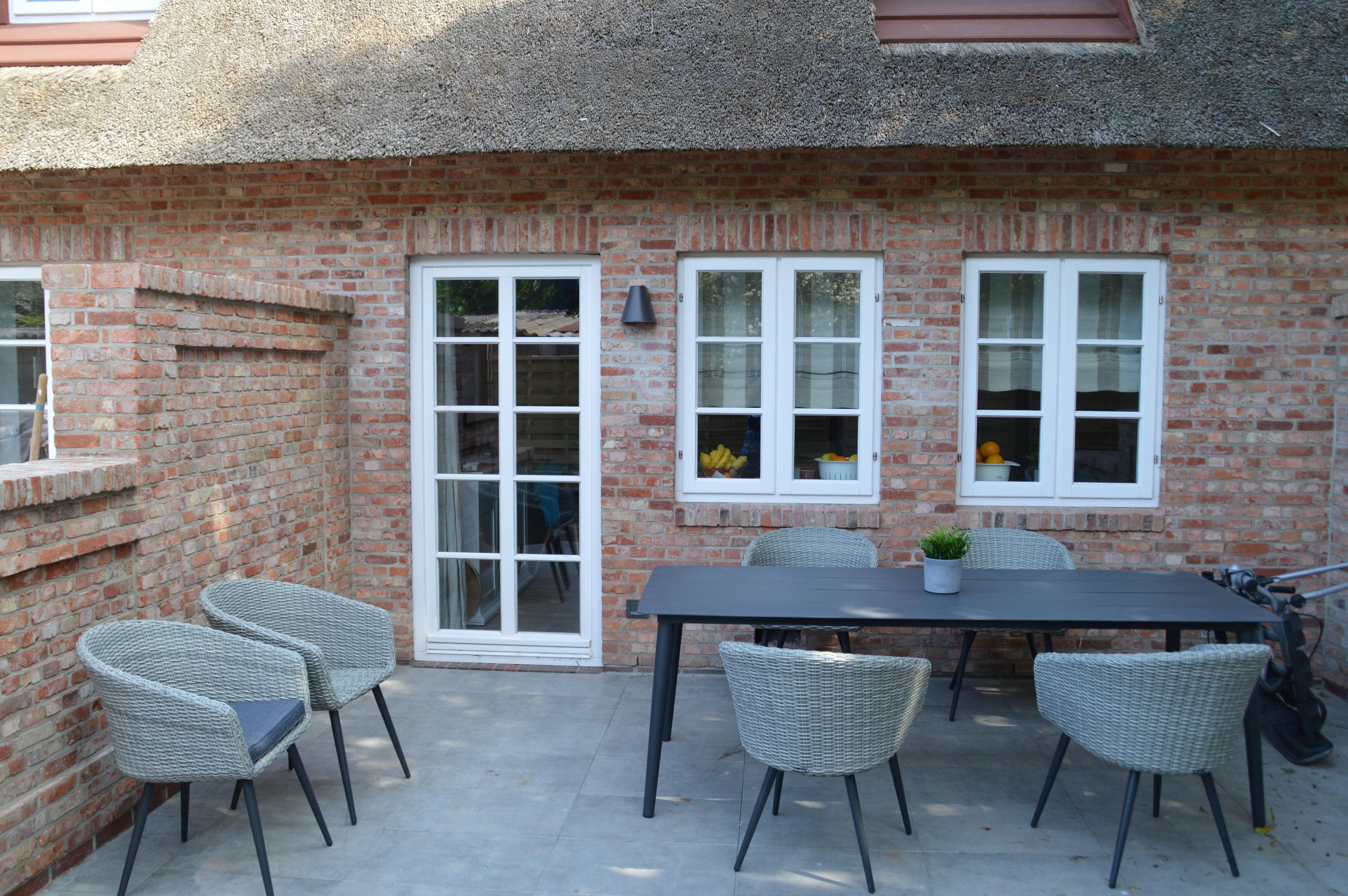 Gemütliches Ferienhaus in Wyk-Boldixum mit Terrasse, Gartenmöbeln und kostenfreiem Parkplatz für entspannte Urlaubstage.