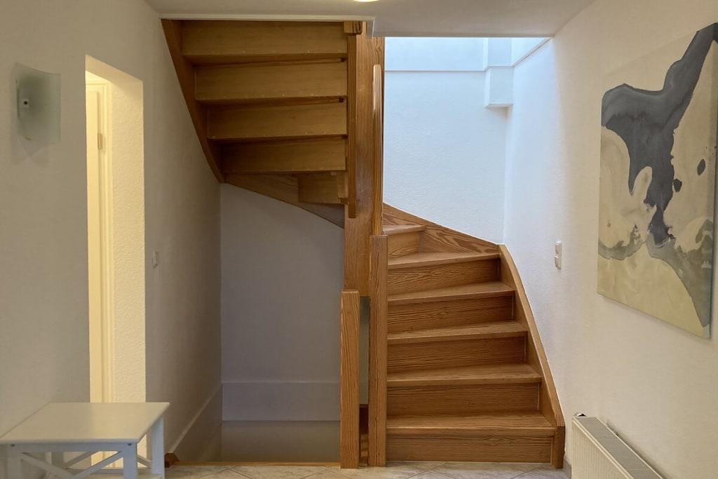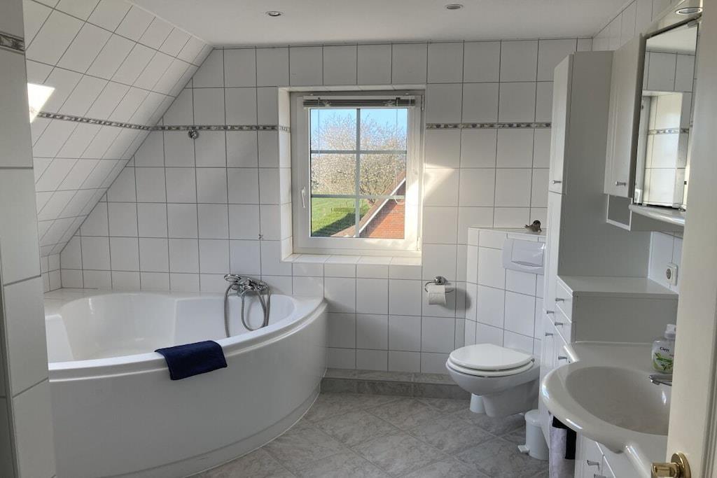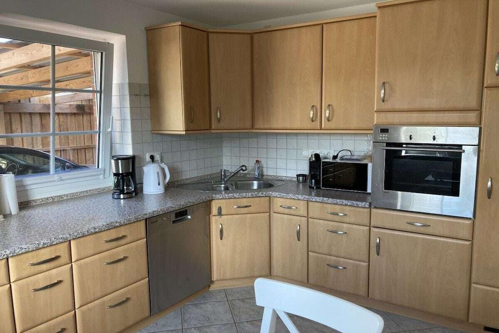 Das gemütliche Haus bietet ausreichend Platz für 6 Personen plus Baby (Babybett, Hochstuhl sind vorhanden). Im Erdgeschoß befindet sich die gut ausgestattete Wohnküche und ein Duschbad mit WC sowie das großzügige Wohn-/Esszimmer mit großem Esstisch, gemütlicher Couch und Ohrensessel. Von hier ist auch der Zugang zur Holzterrasse. Dort laden gemütliche Gartenmöbel sowie Sonnenliegen zum Erholen ein. Auf der angrenzenden Rasenfläche können die Kinder toben und spielen. Im Obergeschoß befinden sich drei Schlafzimmer, davon ein Zimmer mit Doppelbett, ein Zimmer mit zwei Einzelbetten und ein Zimmer mit Einzelbett und zusätzlichem Ausziehbett. Hier befindet sich auch das großzügige Badezimmer mit Eckbadewanne, Dusche und WC. Im Keller befinden sich die Waschmaschine und der Trockner.