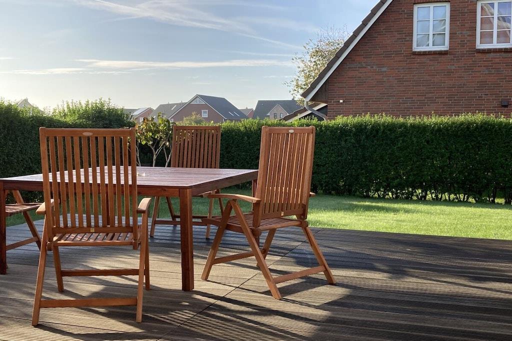 Gemütliches Ferienhaus in Wyk mit Schwimmbecken, Garten und moderner Ausstattung für erholsame Urlaubstage.