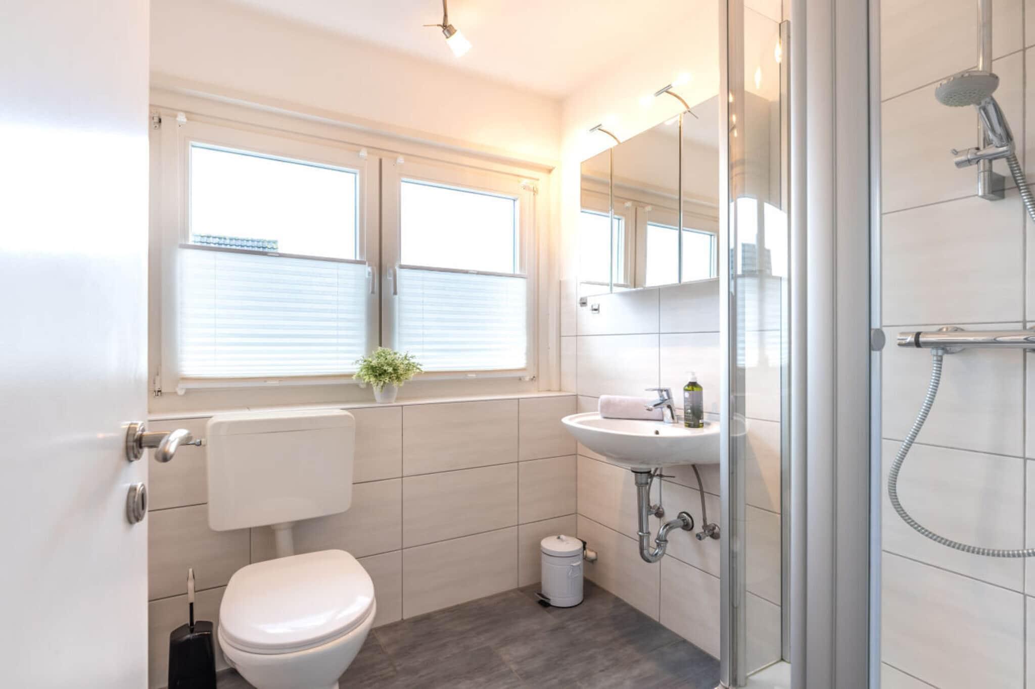 Schlafzimmer Mit drei gemütlichen Schlafzimmern, die eine entspannte Nachtruhe garantieren. Ein Schlafzimmer hat einen privaten Zugang zu einem eigenen Duschbad mit WC. Im oberen Stockwerk gibt es auch eine Leseecke die auch als Spielecke genutzt werden kann. Wohnzimmer Der große Wohnbereich lädt mit seiner Sofaecke und dem klaren, funktionalen Design zum Verweilen ein. Hier können Sie sich entspannen, gemeinsam Filme ansehen oder einfach die gemeinsame Zeit genießen. Der Zugang zum Balkon ist hier vorhanden. Küche Ein großer Esstisch ist der ideale Ort für gesellige Abendessen, die Sie in der voll ausgestatteten, geschlossenen Küche zubereiten können. Von der Mikrowelle über den Backofen bis hin zur Spülmaschine – hier bleiben keine Wünsche unerfüllt. Badezimmer Zwei modernen Badezimmer mit jeweils einer Dusche, Waschbecken und einem WC ausgestattet bietet die Wohnung besten Komfort für alle Gäste.