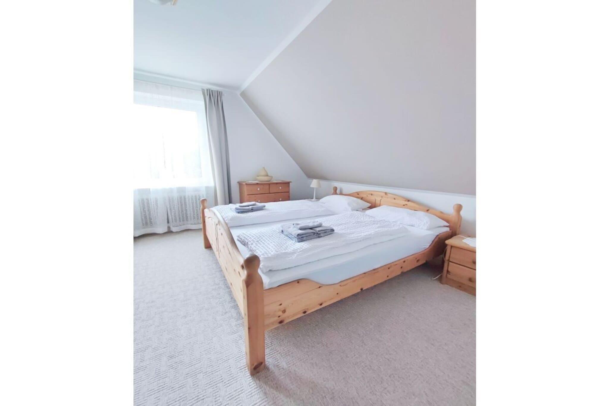 Schlafzimmer Die Ferienwohnung verfügt über drei gemütliche Schlafzimmer, die für einen erholsamen Schlaf sorgen. Wohnzimmer Das helle und einladende Wohnzimmer ist der perfekte Ort für gesellige Abende mit der Familie. Hier finden Sie eine komfortable Sofaecke, die zum Entspannen einlädt, sowie einen modernen Fernseher, der Ihnen viele Unterhaltungsmöglichkeiten bietet. Küche Die gut ausgestattete, geschlossene Küche mit einem Esstisch bietet alles, was Sie zur Zubereitung köstlicher Mahlzeiten benötigen. Neben einem Herd mit 4-Platten und einem Elektro-Backofen stehen Ihnen auch eine Spülmaschine, eine Mikrowelle, ein Kühlschrank mit Gefrierfach sowie verschiedene Küchenutensilien zur Verfügung. So wird jeder Kochabenteuer in der Familie zum Vergnügen! Badezimmer Die Badezimmer sind mit einer Dusche, einem Waschbecken und einem WC ausgestattet und bieten alles, was Sie zur täglichen Hygiene benötigen. Zudem finden Sie weitere Annehmlichkeiten wie einen Haartrockner und einer Waschmaschine, der Ihnen den Aufenthalt besonders unkompliziert macht.