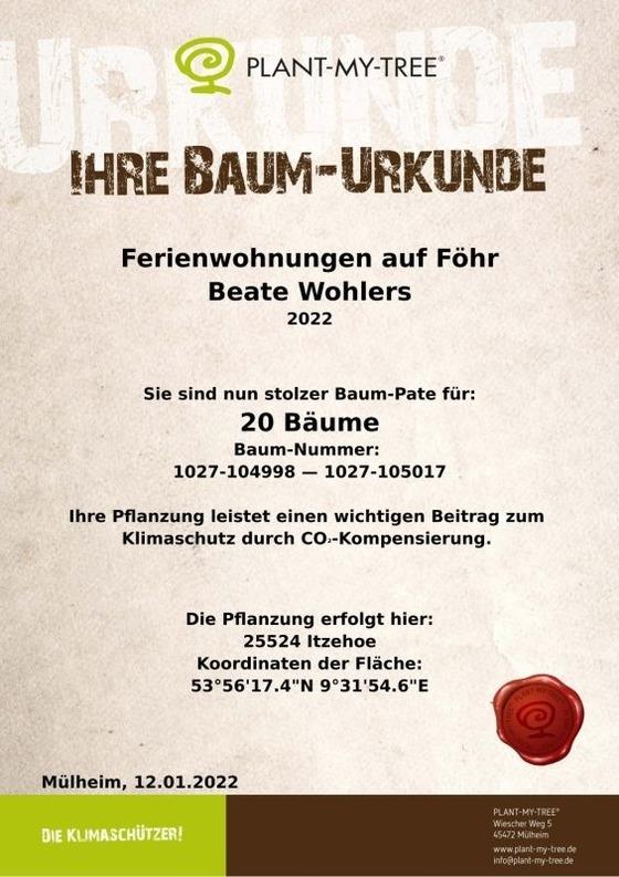 Wir spenden jährlich über PLANT-MY-TREE 20 Bäume und beziehen ausschliesslich Ökostrom für die Ferienhäuser.